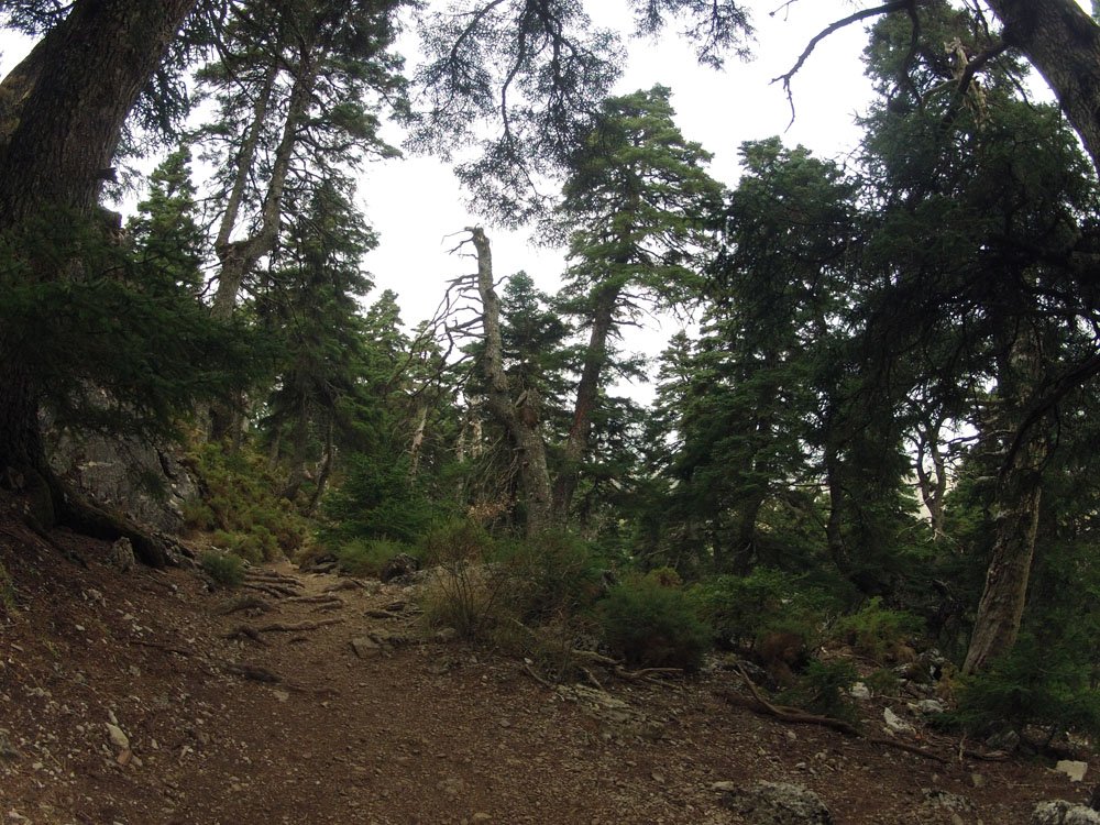 Partimos del Área recreativa de Los Quejigales, dónde discurre un sendero, paralelo al arroyo de las Carboneras, que nos adentra en uno de los bosques más bonitos de la Sierra de las Nieves, la Cañada del Cuerno, donde conviven una gran cantidad de ancianos pinsapos…su gran altura y sus ramas retorcidas, debido a las condiciones climáticas que aguantan, nos da la impresión de habernos adentrado en un bosque encantado, caminamos sobre musgo y grandes troncos caídos, que nos observan en un silencio mágico.