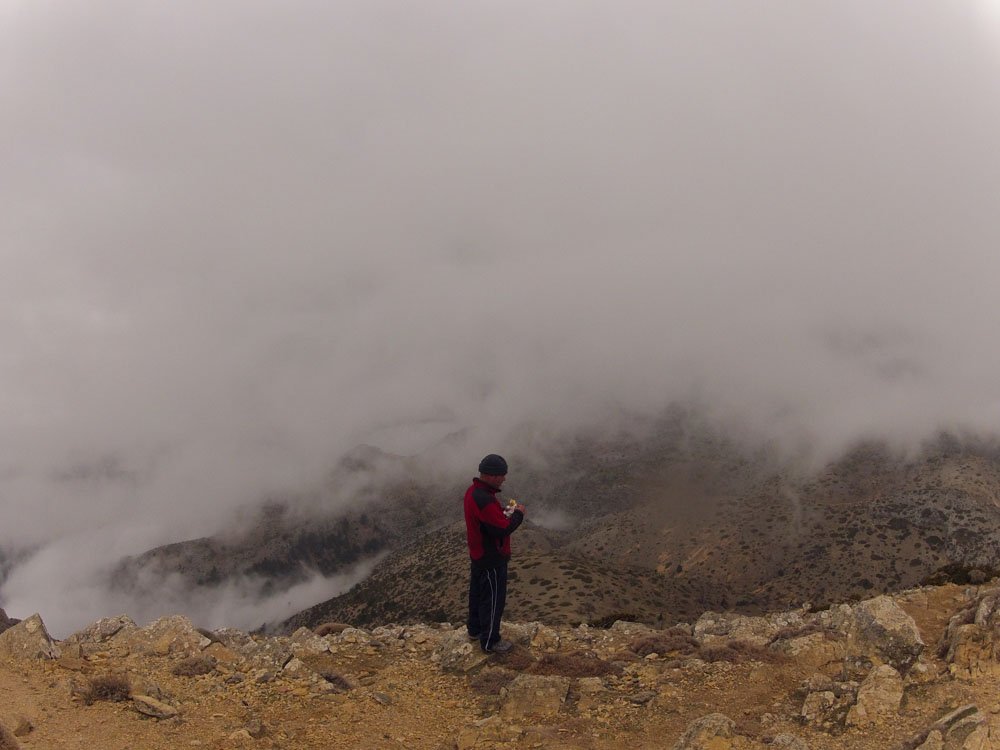 Hicimos una pequeña parada en el Pilar de Tolox, donde nos encontramos una preciosa salamanquesa, en el nacimiento de aguas frescas que brotan de la piedra. Desde aquí atacamos el pico del Torrecilla y llegamos sobre las 12.20 a su cumbre. Desde allí nos maravillamos de una alucinantes vistas, aunque parte de las mismas estuvieron tapadas por un mar de nubes….allí brindamos y dejamos un pequeño mensaje en el buzón.