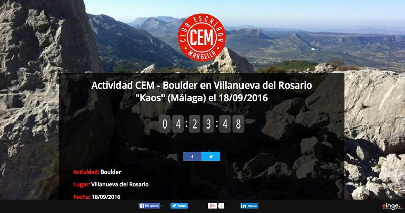 Actividad CEM – Boulder en Villanueva del Rosario «Kaos» (Málaga) el 18/09/2016 CEM2016-09-13T00:14:43+02:00 Artículos relacionados Lucas Gámez se proclama subcampeón de España con la Selección Andaluza de Trail Running en la categoria Promoción, en Oviedo. 12/04/2026 Actividad multidisciplinar de CxM, Marcha Nórdica y Senderismo – Bajada de Ronda a Altos de la Quinta. 30/03/2026 Vertiginoso fin de semana de participaciónes de nuestros Corredore/as Montañero/as 25/03/2026