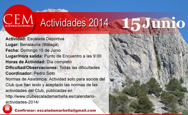 Actividad solo para socios del Club que han leído y aceptado las normas de las actividades del Club, publicadas en http://www.clubescaladamarbella.es/calendario-actividades-2014/