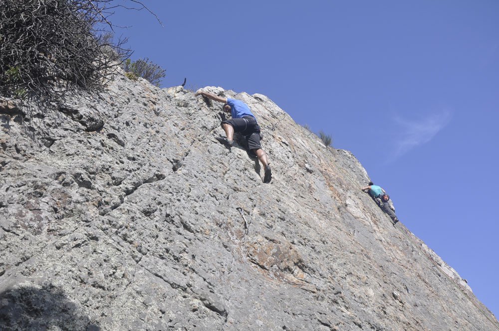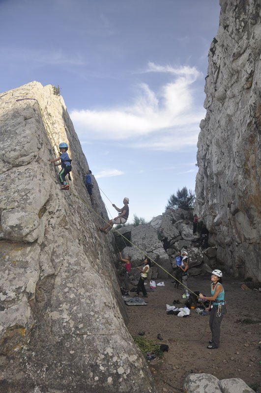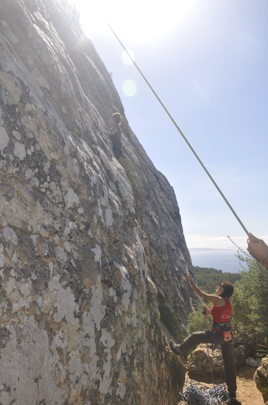 Euforia. Esa es la sensación que tiene uno cuando escala una pared: chocas los cinco a todo el mundo, te abrazas con el que te asegura, subidón!! Si a eso le sumamos un fin de semana rodeado de amigos en un paraje inigualable como es la zona de San Bartolo en Tarifa, la experiencia se convierte en inolvidable. Pues así ha sido este fin de semana bajo la excelente organización del Club de Escalada de Marbella (CEM) y la participación de una veintena de socios.