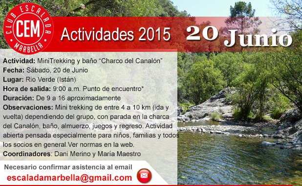 Para poder participar es imprescindible enviar un email al club: escaladamarbella@gmail.com confirmando la participación. No son válidas las llamadas, ni whatsapps, ni hablar con los organizadores de las actividades. Es obligatorio confirmar mediante email al club para poder participar en la actividad. Sin esta confirmación NO se podrá participar en las actividades organizadas por el CEM.