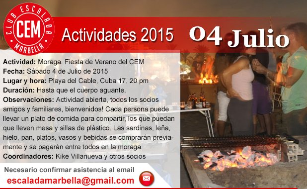 Para poder participar es imprescindible enviar un email al club: escaladamarbella@gmail.com confirmando la participación. No son válidas las llamadas, ni whatsapps, ni hablar con los organizadores de las actividades. Es obligatorio confirmar mediante email al club para poder participar en la actividad. Sin esta confirmación NO se podrá participar en las actividades organizadas por el CEM.