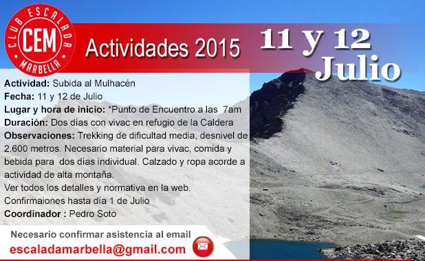Para poder participar es imprescindible enviar un email al club: escaladamarbella@gmail.com confirmando la participación. No son válidas las llamadas, ni whatsapps, ni hablar con los organizadores de las actividades. Es obligatorio confirmar mediante email al club para poder participar en la actividad. Sin esta confirmación NO se podrá participar en las actividades organizadas por el CEM.