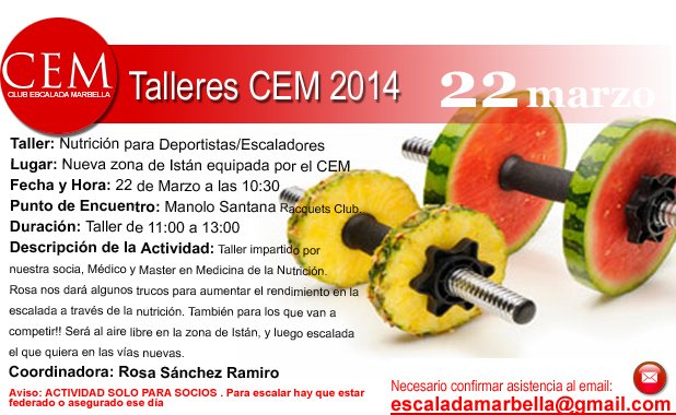 Rosa nos dará algunos trucos para aumentar el rendimiento en la escalada a través de la nutrición. También para los que van a competir!! Será al aire libre en la zona de Istán, y luego escalada el que quiera en las vías nuevas.