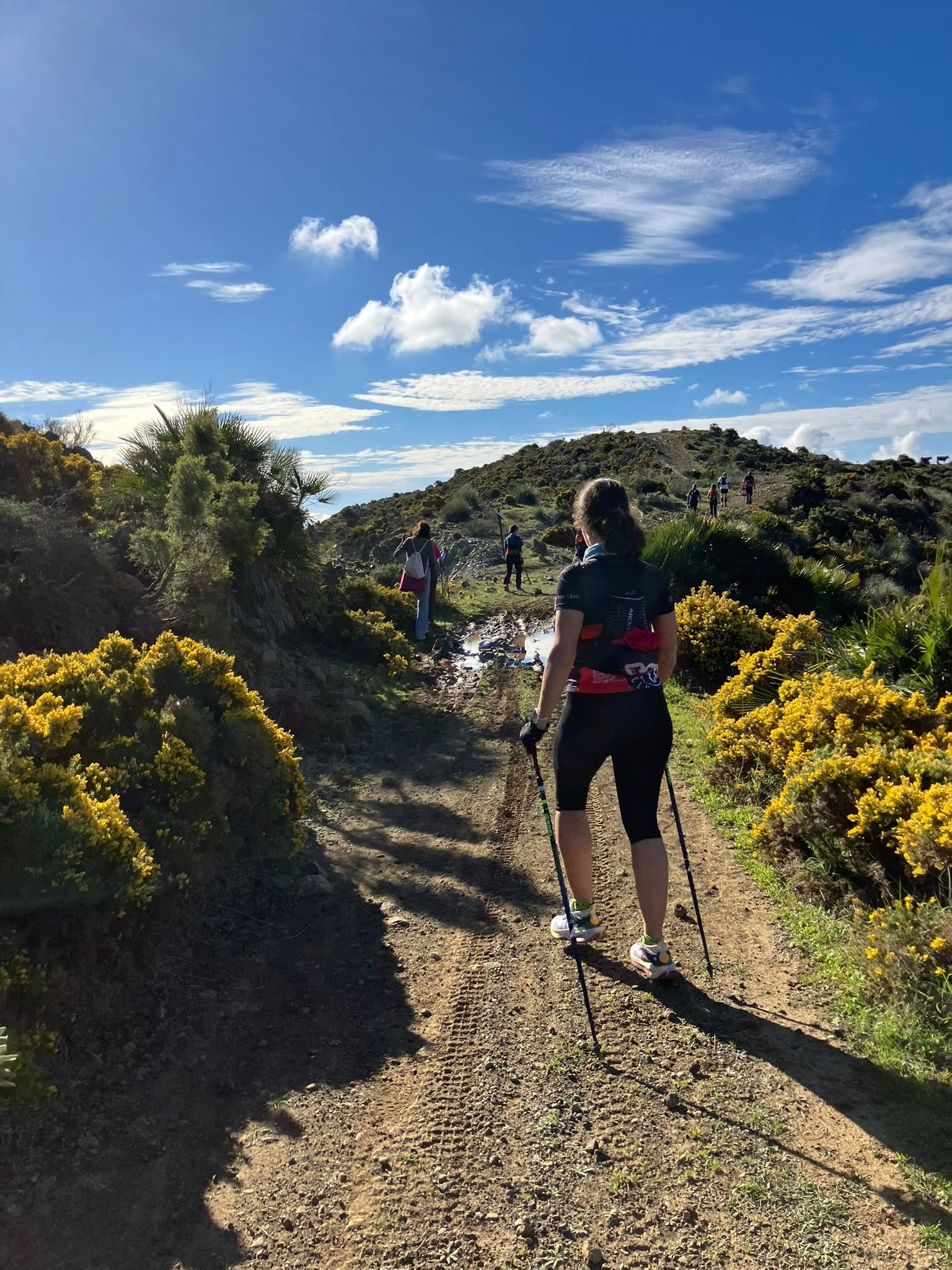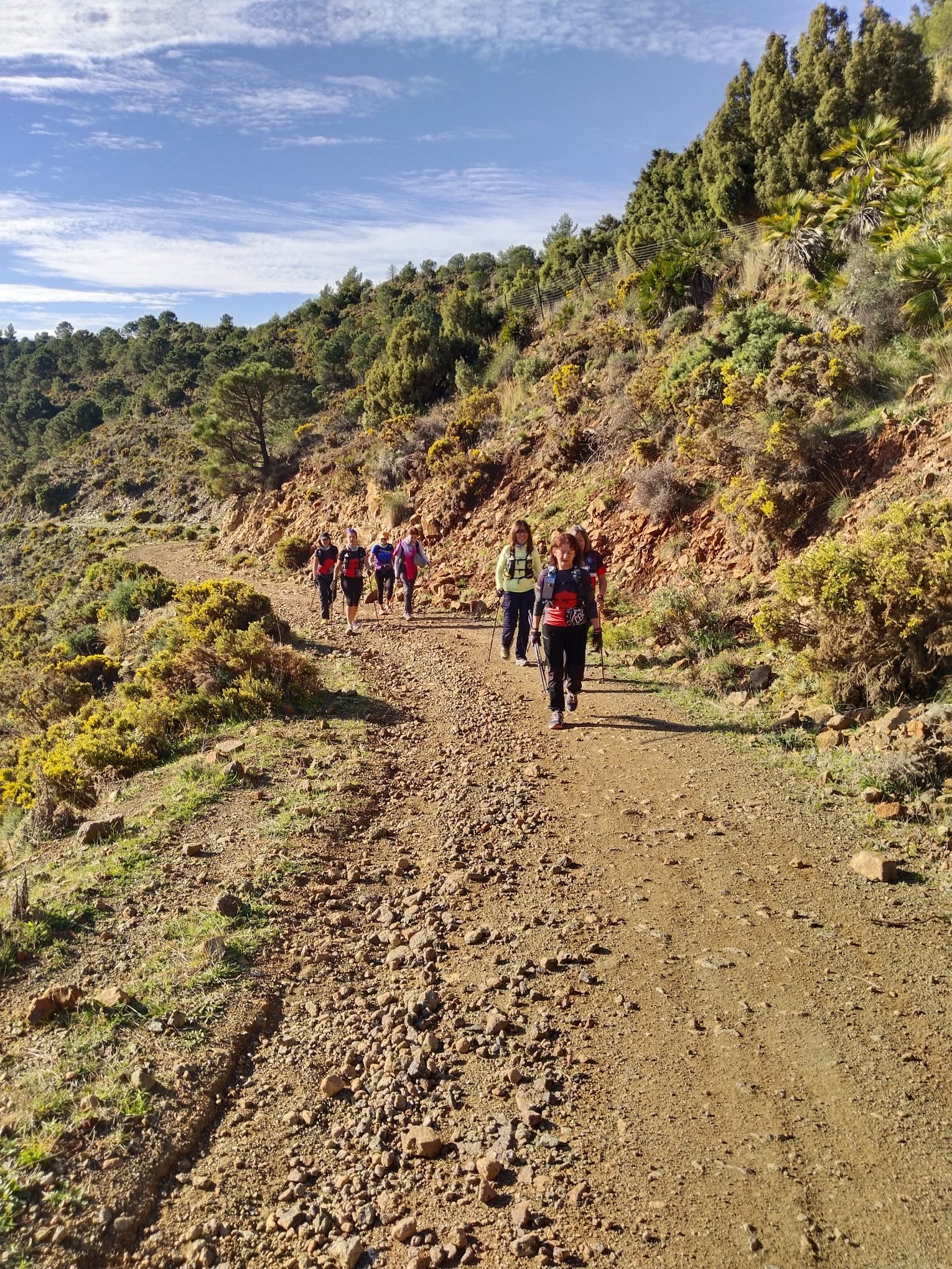 La actividad comenzó a las 09:00 horas temprano, 13 marchadores y senderistas, partiendo desde la urbanización de Pinos de Aloha, y que, tras 4 kilómetros por carriles, llegamos a la bifurcación que nos conduce hasta el Cabrero, como siempre con una gran cantidad de animales de diferentes tamaños, que después de unas fotos y algunas risas continuamos en dirección al cruce del Metiche (Camino del Castaño Santo), justo antes de llegar tomamos la bifurcación que nos llevará hacia la antigua cantera (ya desaparecida y convertida en zona urbanizada o a punto de urbanizarse), bajando por una pista de asfalto que nos lleva nuevamente a la bifurcación antes de tomar el camino del cabrero, para terminar la actividad en el mismo punto de partida.