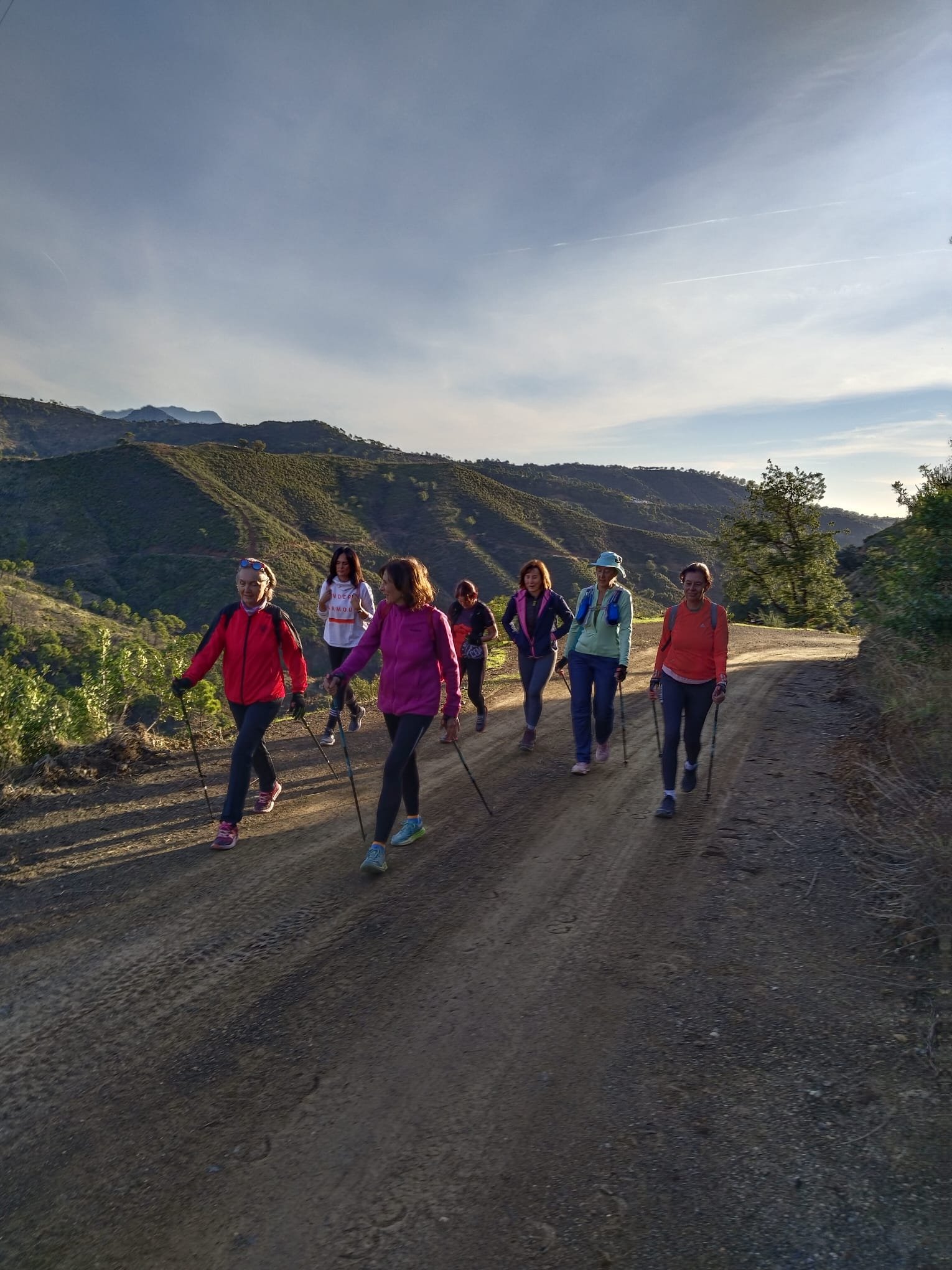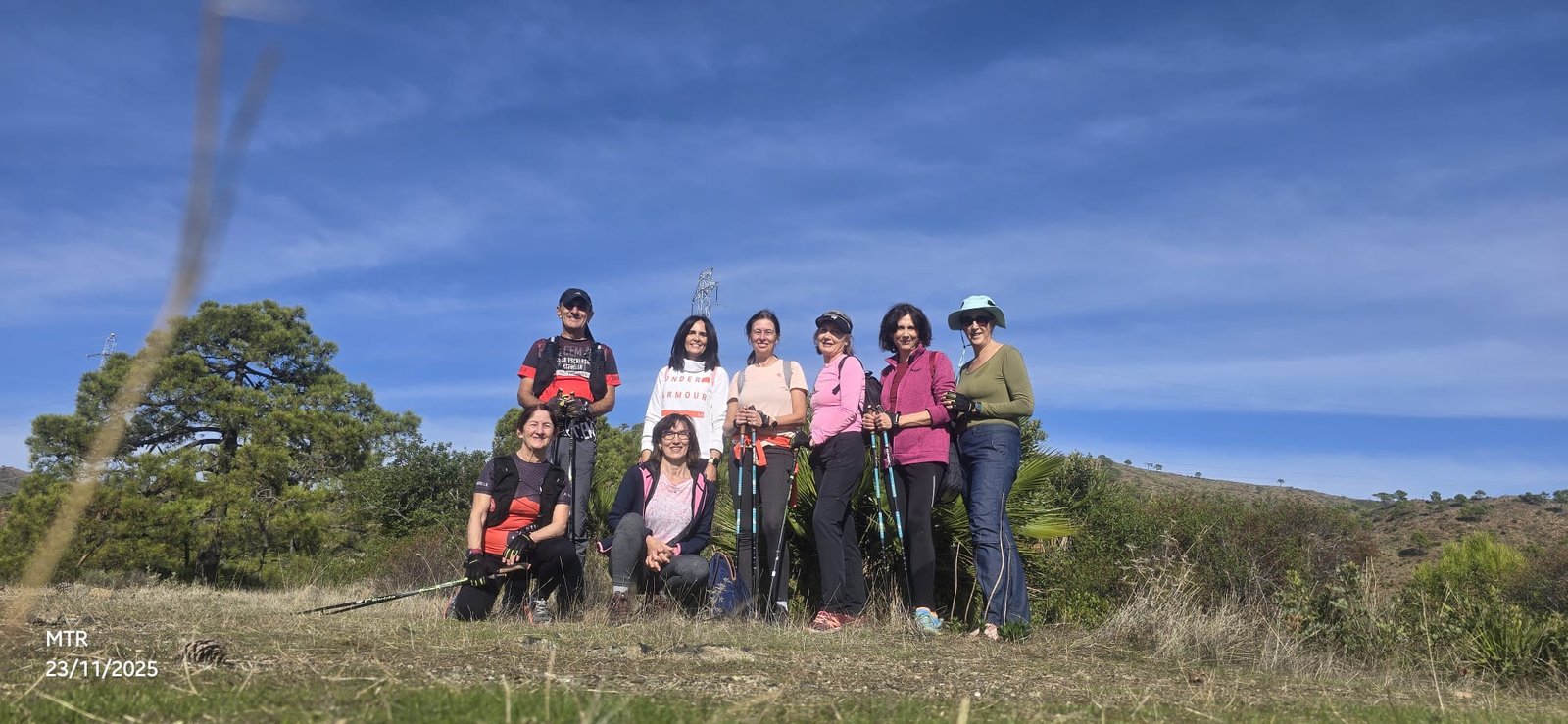 Domingo 23 de noviembre de 2025; 8 compañeras y compañero del CEM, marchadore/as nórdico/as y senderistas, junto con dos monitores voluntarios del club, hemos efectuado un precioso recorrido circular partiendo desde el puente que cruza la autopista de peaje a la altura del camino de Nicola (Estepona), La ruta transcurre íntegramente por carril de tierra, salvo los dos últimos kilómetros, que caminamos por un camino de asfalto sin apenas alguno.