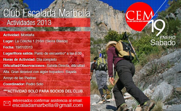 Interesados confirmar asistencia al email: escaladamarbella@gmail.com