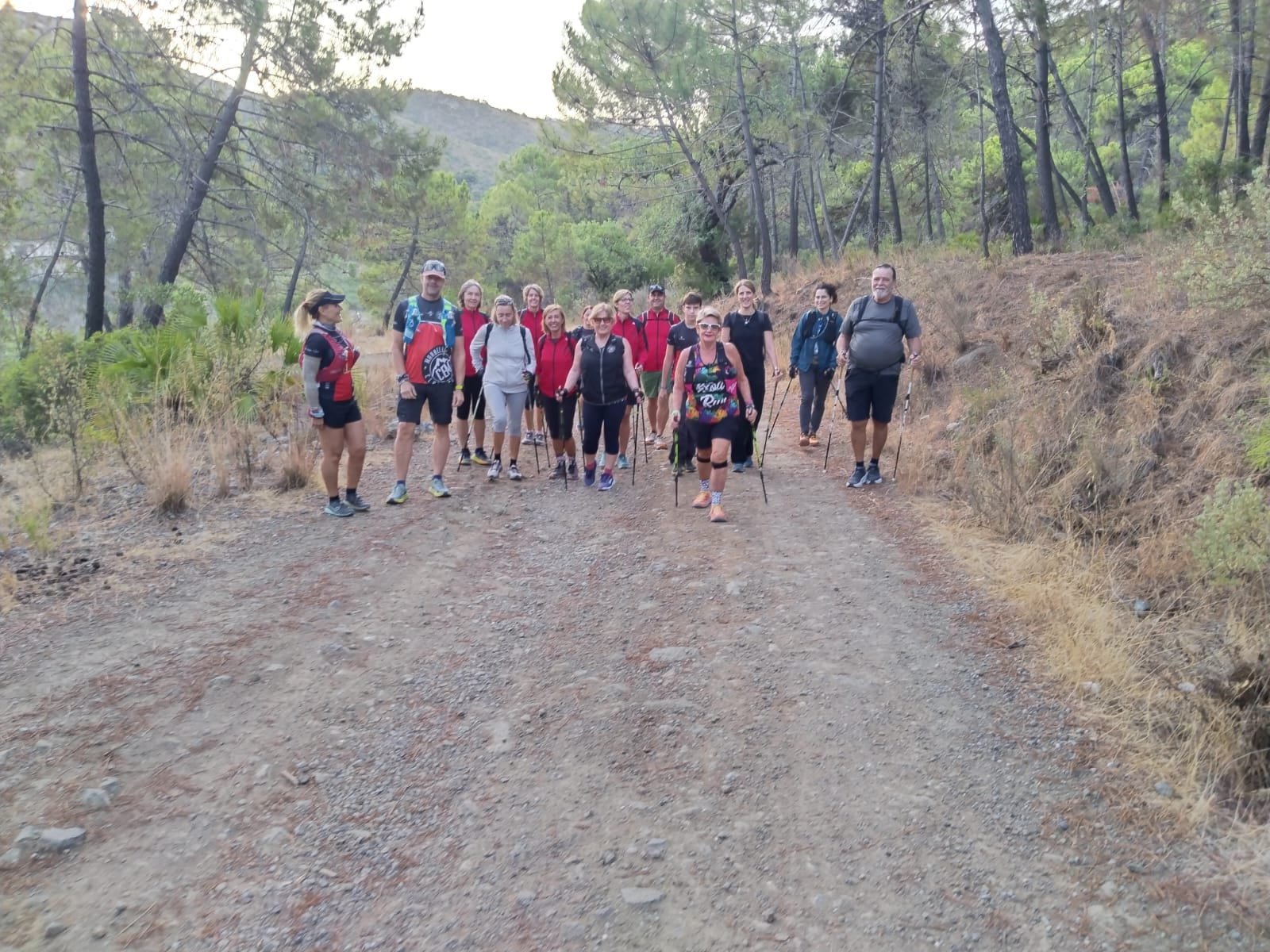 15 miembros del CEM, marchadore/as nórdico/as y senderistas y algun/a corredor/a x montaña, junto con dos monitores voluntarios del club, hemos efectuado un precioso recorrido lineal bordeando el rio Guadalmina, cubriendo una distancia de aproximadamente 11 kilómetros y un desnivel «bajito», apto para «todos los públicos»,