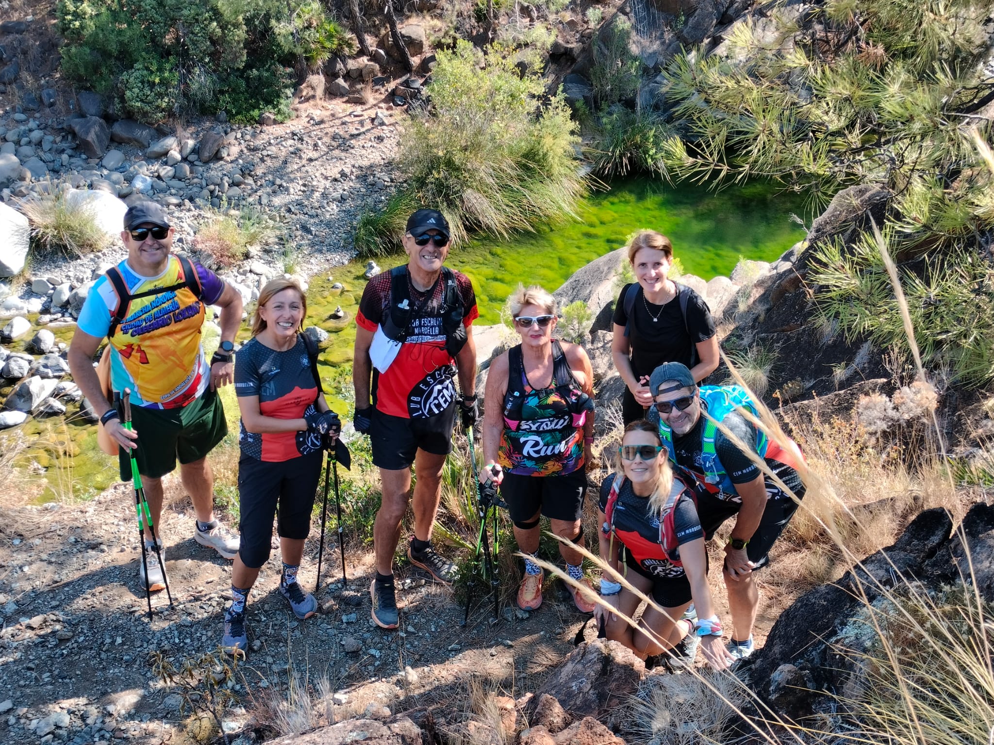 Comenzamos la actividad en el aparcamiento del pantano de Benahavis, desde allí iniciamos esta preciosa ruta, con unos paisajes espectaculares, y casi al final del recorrido, llegamos a una zona accesible de pozas aptas para el baño y aunque aparentemente el agua de las pozas parecía fría, tanto el peque del grupo Diego Rojas y la valiente Rosario se lanzaron al agua y poco a poco varios participantes siguieron el mismo camino, haciendo una jornada muy divertida de los que no solo disfrutamos haciendo deporte, el compañerismo, las anécdotas, fotos divertidas y un grandísimo ambiente de grupo acompañó toda la jornada.