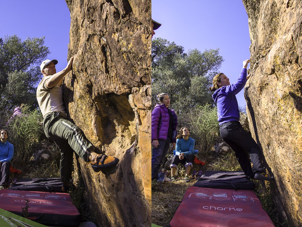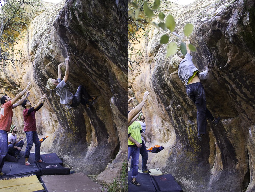 Mientras probamos pequeños bloques en unos bolos plaqueros entre la arboleda aparece un buen amigo y compañero bloquero Damian «cuquicha» de Malaga y nos muestra algunas lineas que tenia el ya bicheadas y pasamos la ultima parte de esta gran jornada entre risas y pegues.