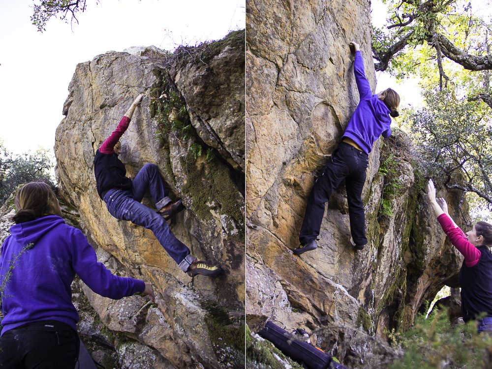 Mientras las chicas y Thorsten buscaban zonas de nueva apertura y probaban un 6a y alguna cosa mas exigente dentro del mismo gran bloque pero en la zona menos desplomada pero también con bloques muy bonitos.