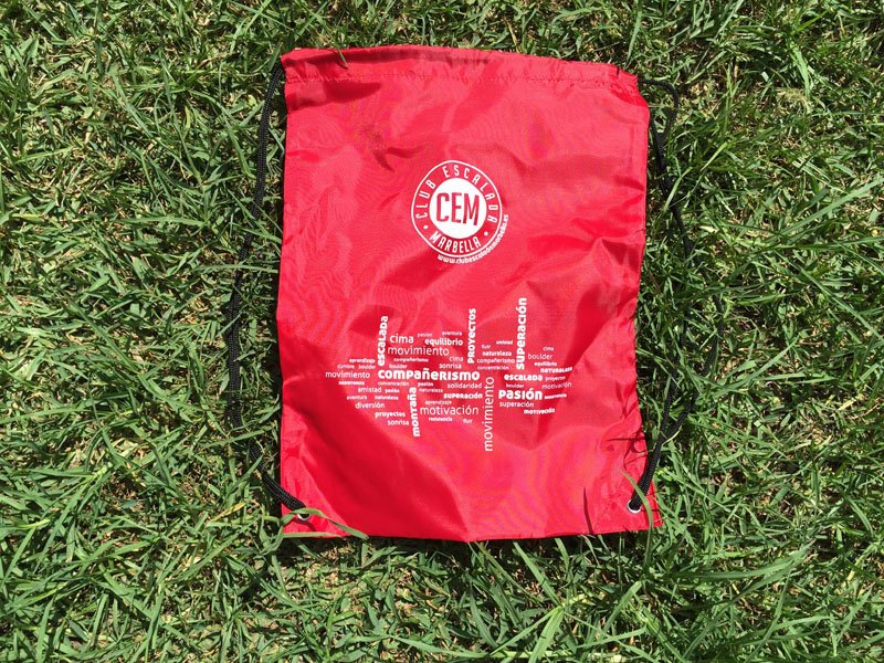 Los participantes del Encuentro lo recibirán de forma gratuita con la Inscripción. El resto de interesados pueden comprar estas bolsas por 5€ y los socios del Club Escalada Marbella por 4€.