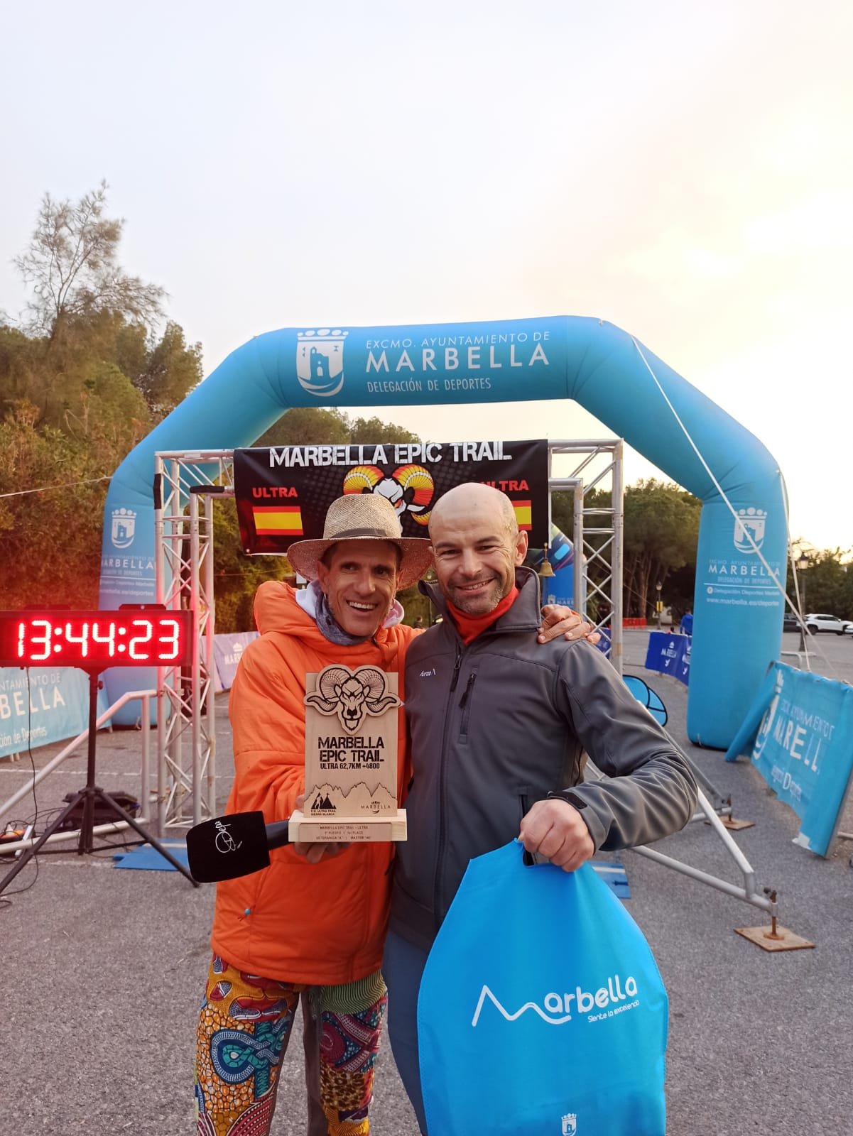 Para rematar este fin de semana con la Epic Trail Marbella, se dio el pistoletazo de salida a las 5 am y en un tiempazo de 11 horas y 10 minutos, Leo Pavón cruzaba la meta, consiguiendo la 8ª posición de la general absoluta y subiendo al podio en 3er. lugar en la categoría VetA, algo más tarde, pasadas las 17 horas de este pedazo ultra, nuestro Tomás Nieto cruzó la ansiada meta en compañía de su inseparable familia.