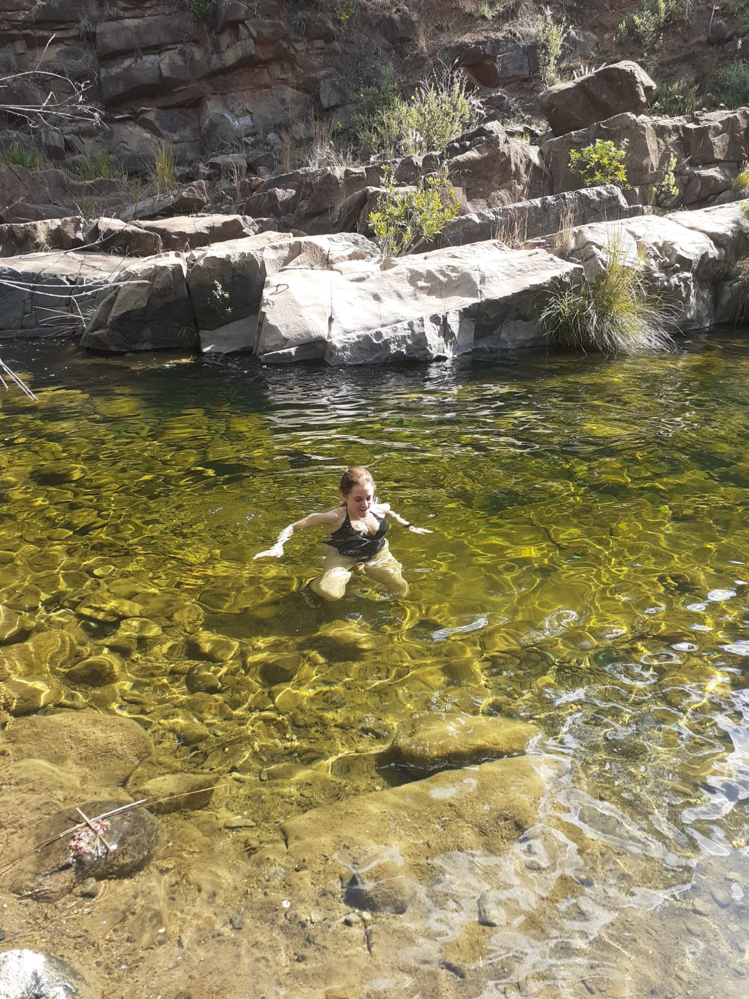 Actividad de Marcha Nórdica del CEM 28/04/2024, 14 marchador@s nórdicos efectuamos ruta lineal por el precioso paisaje de Bahavis, partiendo desde el pantano, y yendo paralelo al rio Guadalmina y a la vuelta visitar la poza de la Gasolina, donde nuestra valiente compañera Assumpta se atrevio al darse un baño en las «fresquitas» aguas de la poza. efectuando un recorrido de aproximadamente 12 kilómetros.