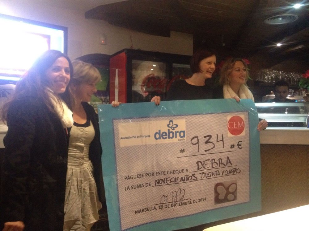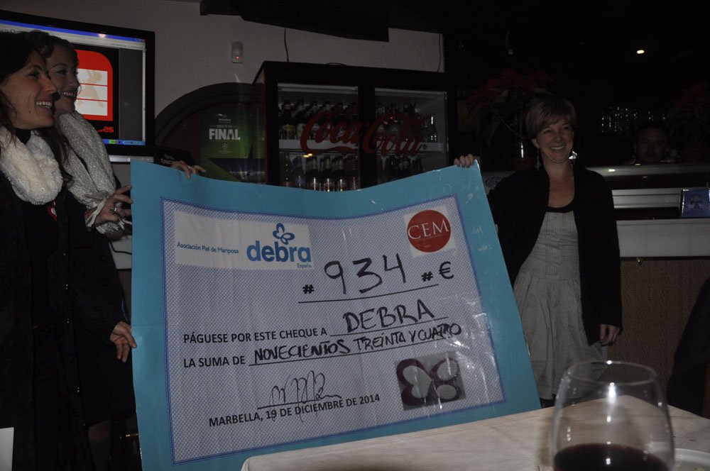 También tuvimos un gran momento emotivo al entregar a Debra el euro solidario de nuestra cuota anual, así como la recaudación de la campaña de venta de mariposas de estas navidades. 934€ de recaudación que recogió Evanina Morcillo, Directora de Debra España. Uno de los participantes en la cena quiso redondear la cifra para llegar a los simbólicos 1.000€. Gracias Javier Soto por regalarnos otro emotivo momento de la noche. Agradecemos a Evanina por venir personalmente a recoger este cheque gigante simbólico que preparó una de nuestras socias con tanto cariño,  y pasar toda la noche con nosotros, y sobre todo por sus emotivas palabras que nos dejaron unos minutos sin aliento.