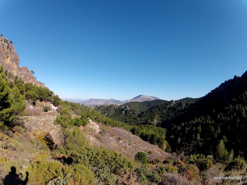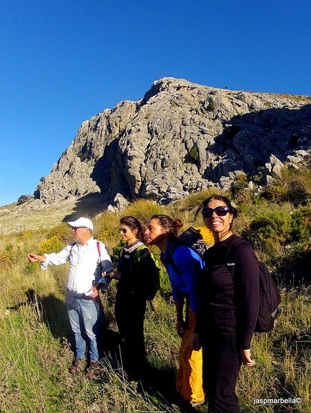 Se coronó la cima del Peñón de Ronda sin ninguna dificultad, desde el punto más alto tuvimos vistas increíbles gracias al día tan bueno y al cielo despejado que nos acompañó en todo momento. Así, divisamos los pinsapos de la “cañá” de las Ánimas, los más cercanos del llamado pinsapar de Cubero, las moles impresionantes de Sierra Prieta y Sierra Cabrilla que esconden bajo sus faldas los pueblos de Casarabonela y Alozaina, uno de los pantanos de nuestro querido “Chorro” y hasta la cima de la Maroma. Sin embargo no tuvimos tanta suerte con los animales, aquí es bastante normal ver las cabras monteses o los buitres pero se ve que todos estaban de vacaciones porque, como diría el Lazarillo de Tormes, ni los olimos.