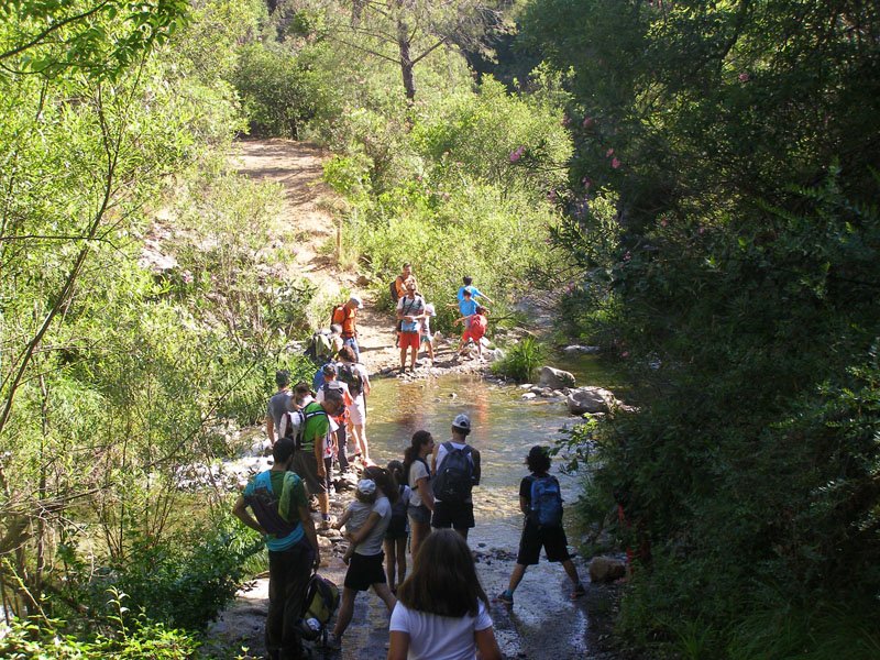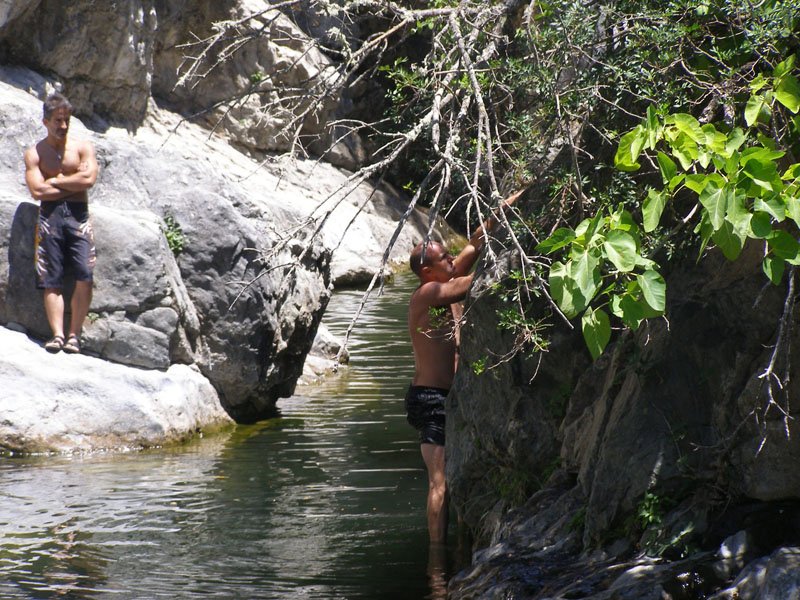 Caminamos durante un rato hasta un lugar en el que el río formaba varias charcas. Era muy bonito. También había una pequeña cascada. En las pozas había ranas, pececillos, una tortuga y unos curiosos insectos que son capaces de caminar sobre el agua. Pudimos bañarnos con ellos.