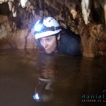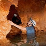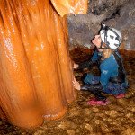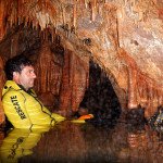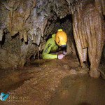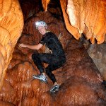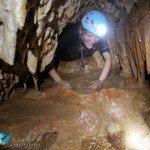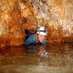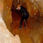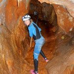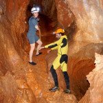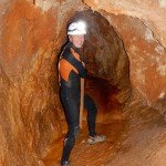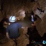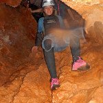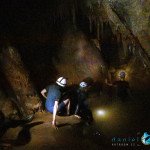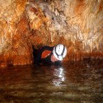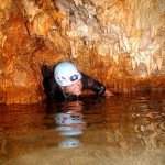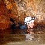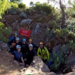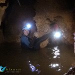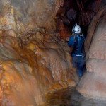 Primero nos adentramos en la cueva de la Excéntrica. La subida hasta la entrada es empinada y rocosa poniendo a prueba nuestros cuadriceps y gemelos, lo cual sirvió estupendamente como calentamiento. El punto de entrada es estrecho, había que pasarlo casi arrastrándose pero daba lugar a una sala espaciosa con techos elevados, permitiendo la progresión de forma cómoda, de pie, en la mayor parte del recorrido, y alejando así cualquier sensación de claustrofobia. Lo que más se podía apreciar eran estalagtitas y estalagmitas, y el color rojizo de las paredes y suelos. Las había de todos los tamaños, pero de formas concéntricas mayormente, de ahí recibe su nombre la cueva. Esta, cuenta con dos partes, una seca y otra húmeda a la que se accede a través de una cuerda. Estábamos tan ensimismados contemplando la riqueza de la roca caliza que a más de uno se nos olvidaba mirar abajo y tener en cuenta que también había un poco de caída y cuando te percatabas se escapaba algún que otro «¡Ahí Dios mio!». Dentro del agua, el recorrido se estrechaba, estabas entre paredes, y podías nadar tranquilamente o caminar e ir viendo y tocando las formaciones a tú paso. Aprovechábamos cualquier trozo de roca parecida a un asiendo para escapar del frio del agua. La naturaleza, que es muy sabia, guarda lo mejor para el final. ¿Quien iba a pensar?, que a través de un hueco sobre el agua parecido a un «anillo» pasaríamos a contemplar un espectaculo «La galería de las excéntricas» con una riqueza en formaciones que quita el sentido: órganos, cortinas, columnas y miles de estalagtitas y estalagmitas decorandolo todo. Antes de salir tuvimos nuestro momento «zen/disfrutón», apagamos las luces de los cascos y nos mantuvimos en silencio escuchando las gotas de agua caer. ¡Fue espectacular!. Una vez fuera la sensación es de haber estado en un verdadero spa. Marisa lo describió perfectamente; ya nunca más volveríamos a pisar aquella zona de la misma manera sabiendo que debajo estaba esa maravilla.