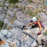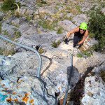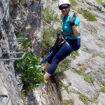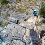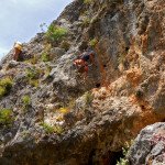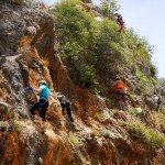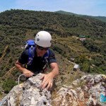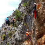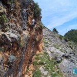 Bajamos la colina casi en silencio, rememorando cada uno mentalmente la experiencia que habíamos vivido. Y nos dispusimos a iniciar nuestra segunda aventura: la Ferrata de Igualeja, pasando por el nacimiento del genal, con esas aguas cristalinas de color esmeralda que van abriendo boca de la belleza del paisaje que nos vamos a ir encontrando. Es una vía perfecta para principiantes, la mayor parte de la travesía en horizontal, aunque tiene subidas, bajadas y tramos desplomados que superan los 30 metros de desnivel. La entrada pone aprueba tus brazos, te vas encontrando con repechos y algunos pasos técnicos, pero tiene buenas zonas de descanso. Utilizar la tercera vaga se convertía en algunos momentos en una delicia más que en una obligación, porque te permitía disfrutar del paisaje y aprovechar la brisa que corría para recuperarse. La sensación al acabar es de que se queda corta, que ha sido poco tiempo.