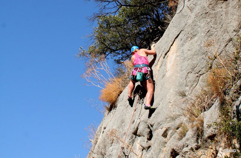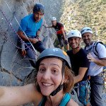 Numeroso grupo el que se animó a disfrutar de esta escuela tan cercana y a la vez tan poco conocida por los escaladores locales. Cada uno en su grado tuvimos la oportunidad de hacer lo que tanto nos gusta: Escalar, Trepar, Volar…