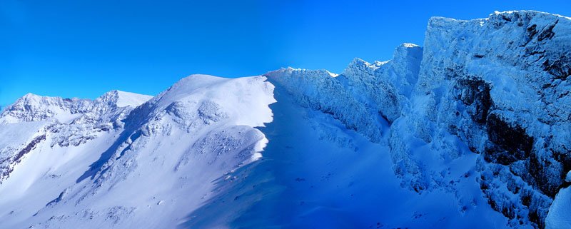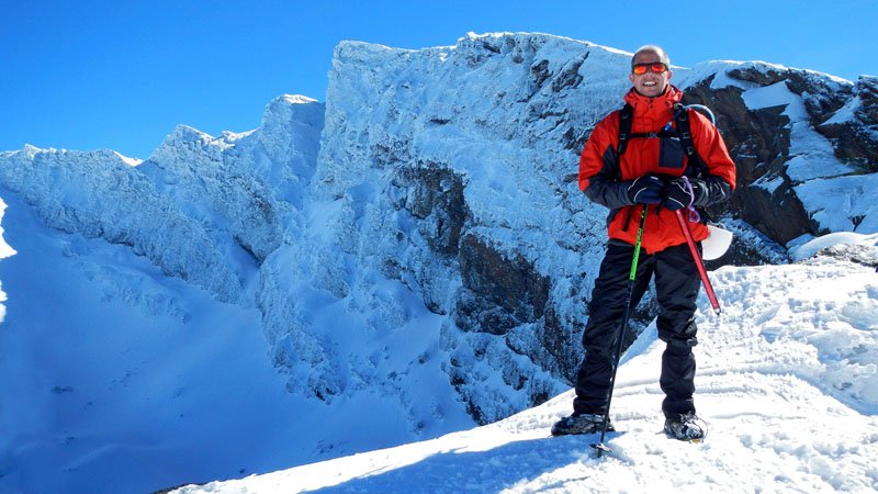 Estos últimos metros a mí personalmente se me hacen eternos y avanzo sufriendo paso a paso, pero en alta montaña esta claro que un alto porcentaje, aparte del nivel técnico y físico, es mental, tienes que seguir avanzando a pesar de todo, y así me esfuerzo a hacerlo. Una vez llegamos a las Posiciones del Veleta, la vista nos quita el poco aliento que nos quedaba, asomarnos al barranco con cientos de metros hacia abajo de caída libre, la visión de la cara norte de los mayores picos de Sierra Nevada, todo totalmente blanco cubierto por la nieve y el hielo, son absolutamente sobrecogedoras y te hacen sentirte muy muy pequeño.
