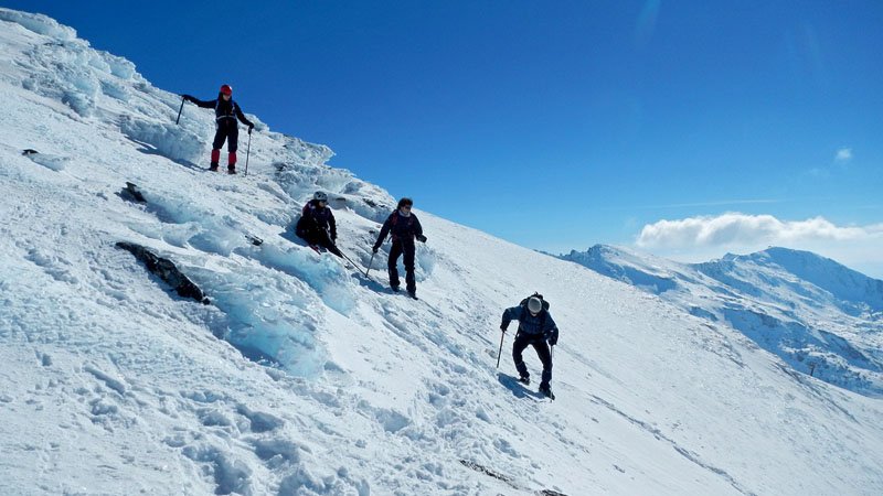Por fin, tras varios fines de semana posponiendo la actividad por la climatología (cuando no nevaba, había vientos de más de 80 km/h y temperaturas por debajo de los -20º…), este fin de semana parece que el tiempo nos da una tregua, poco viento, despejado y aunque las temperaturas estarán entre los -3 y los -10, bien abrigados tiramos para Sierra Nevada. Lo único que nos preocupaba un poco eran las predicciones de mucho hielo, cosa que al final solo fié así en la parte alta, el resto nieve polvo estupenda.