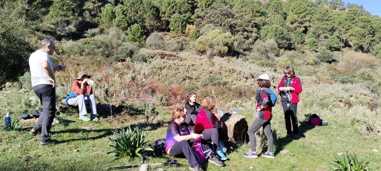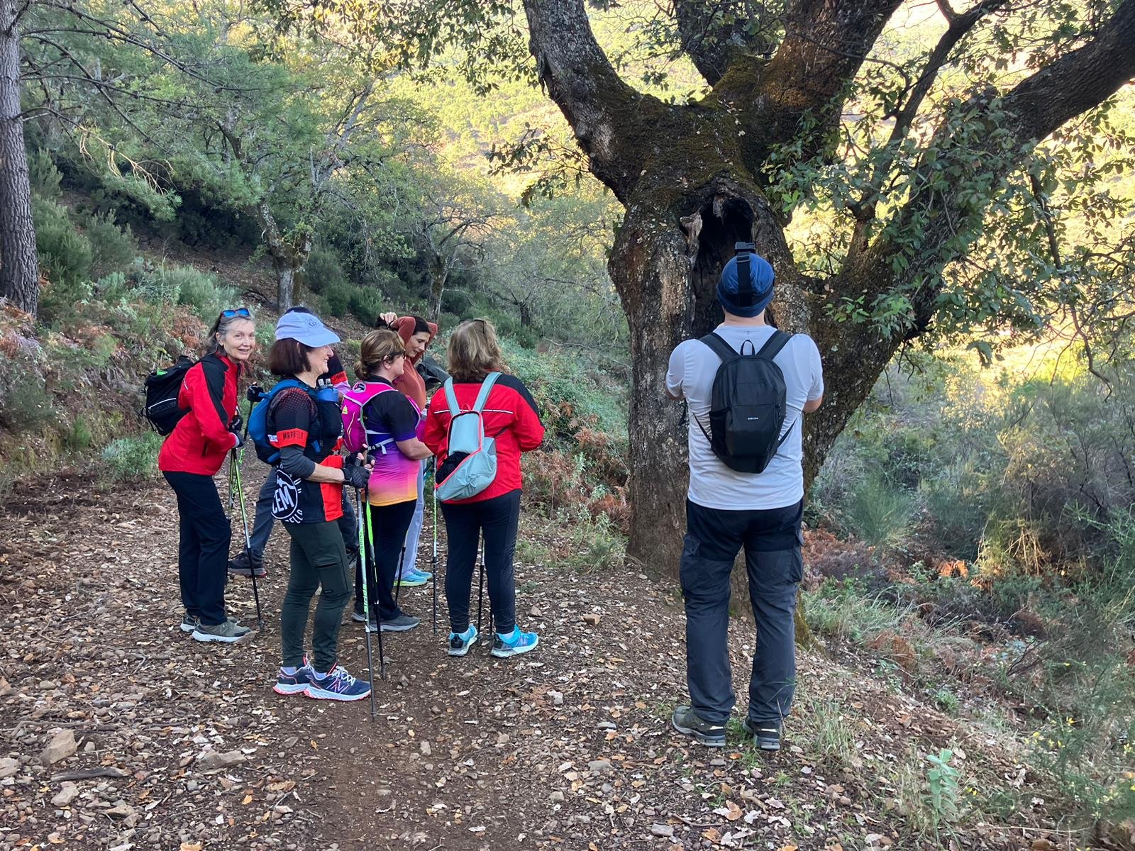 La actividad comenzó en el aparcamiento frente a la entrada norte de la urbanización de la Zagaleta (Benahavís), nos encontramos con un terreno muy apto para la práctica de la marcha, entre paisaje de pinos, alcornoques, quejigos, brezos y jaras, hasta el antiguo asentamiento morisco del Daidin, donde hicimos un alto en el camino para reponer fuerzas y hacer el camino de regreso a los vehículos.