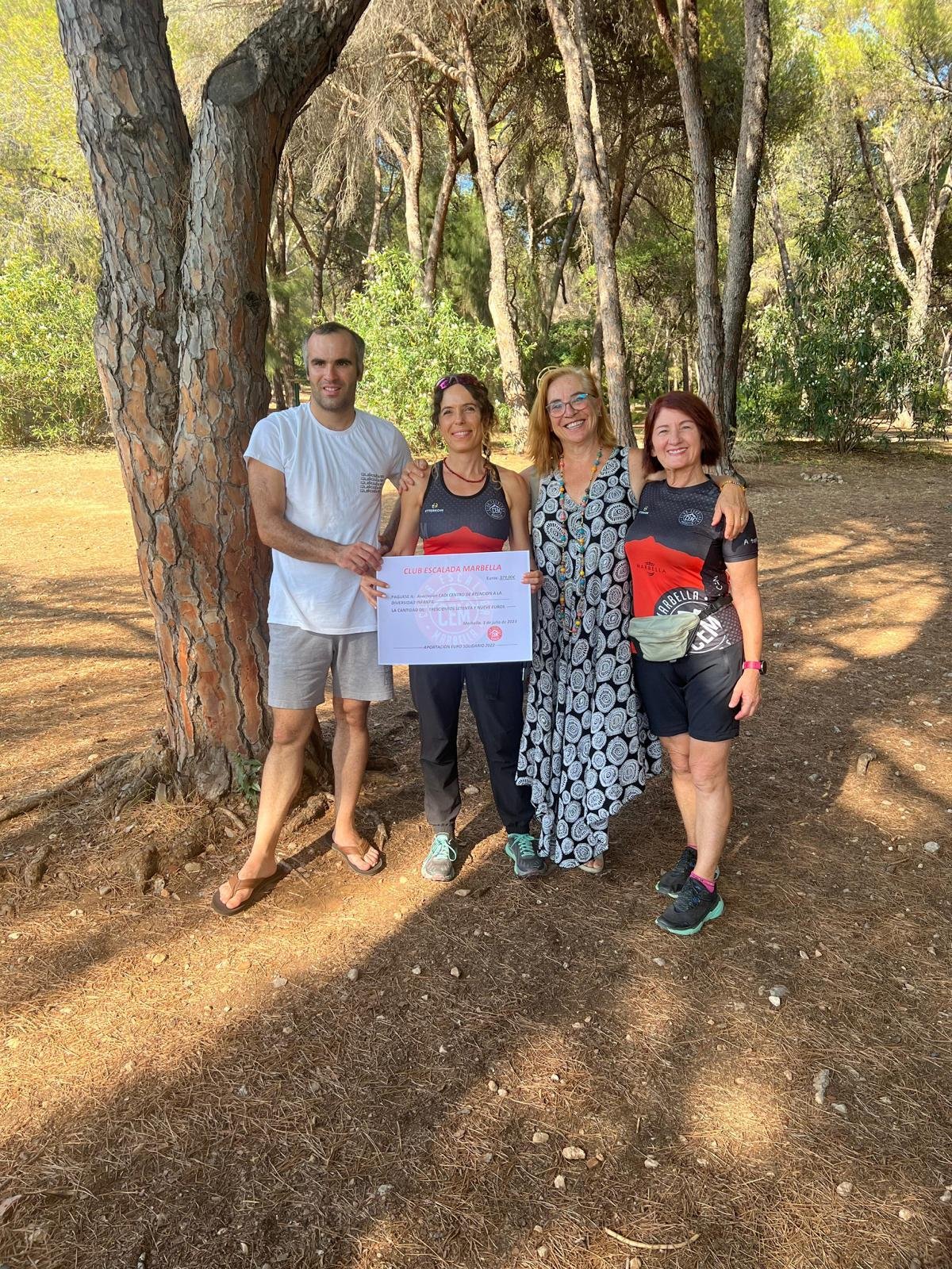 El pasado 4 de julio, el Club Escalada Marbella informa que, en Parque Nagüeles, hizo el acto de entrega de los cheques solidarios por valor de 379,00 euros cada uno tanto a DEBRA – PIEL DE MARIPOSA, como a CADI CENTRO DE ATENCION A LA DIVERSIDAD INFANTIL, importe equivalente de 1 euro por cada uno de los 379 socios que el Club registró en 2022,