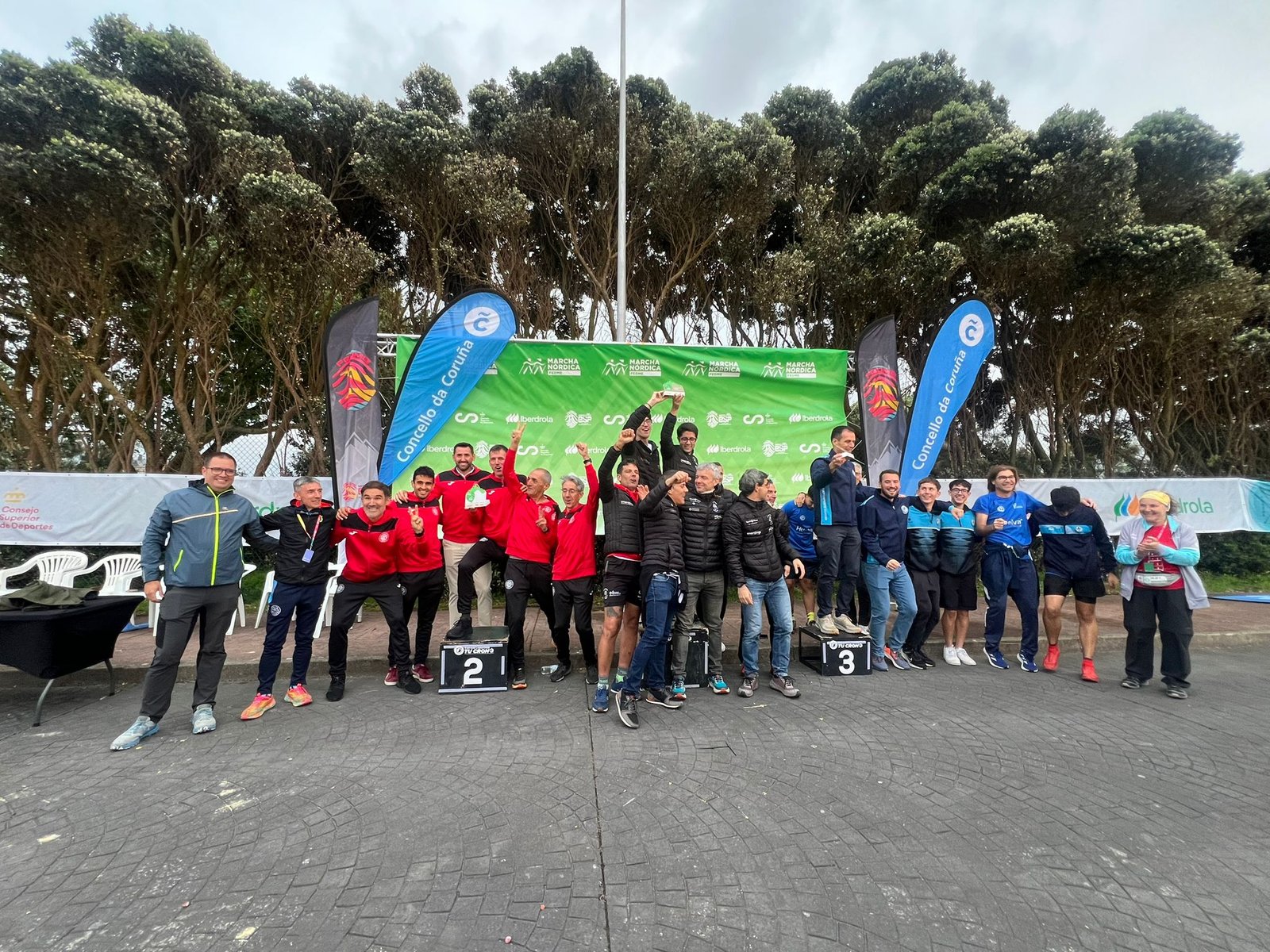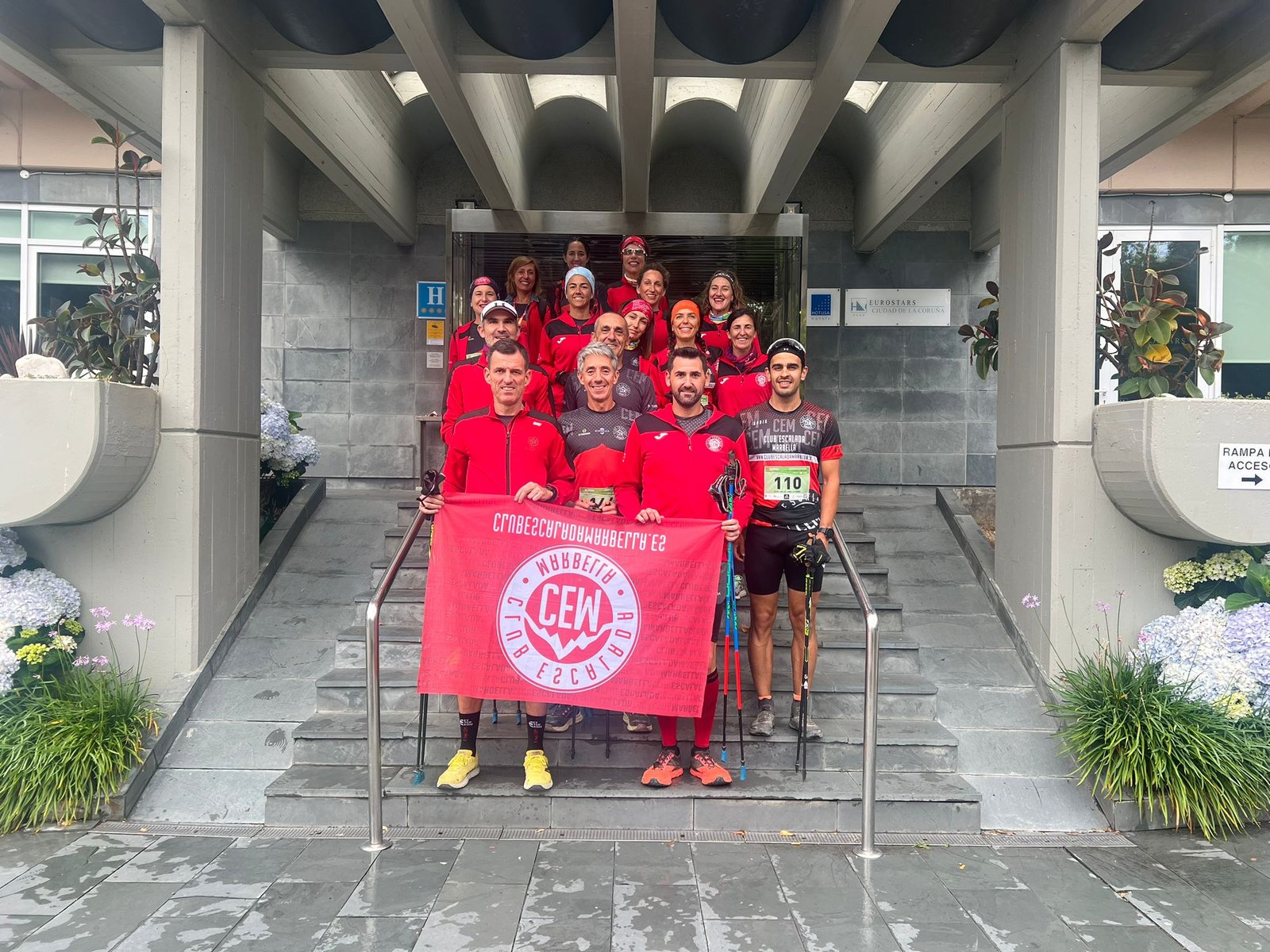 Marbella, 8 de junio de 2024.- El Club Escalada Marbella (CEM) participó este fin de semana en el Campeonato de España de Clubes de Marcha Nórdica, celebrado en el impresionante entorno de la Torre de Hércules, en Cabo Finisterre, A Coruña, evento organizado por la Federación Española de Deportes de Montaña, Escalada y Senderismo (FEDME) y bajo su propio reglamento, dando cinco vueltas a un circuito, una distancia aproximada total de 14.900 m, con salida en adoquines y piedra (1.000m), en un circuito de tierra compactada, y finalizar sobre adoquines (250m), con desnivel total de +250m, la prueba se desarrolló junto al mar, normalmente es una zona expuesta al viento y ante una de las pruebas más exigentes del calendario español, con un altísimo nivel de participantes, prueba realizada en un día nublado, con frecuentes rachas fuerte de viento, pero con muy buena temperatura para la práctica de la marcha nórdica, el CEM desplazo hasta A Coruña a 14 marchadores en sus equipos tanto masculino como femenino.