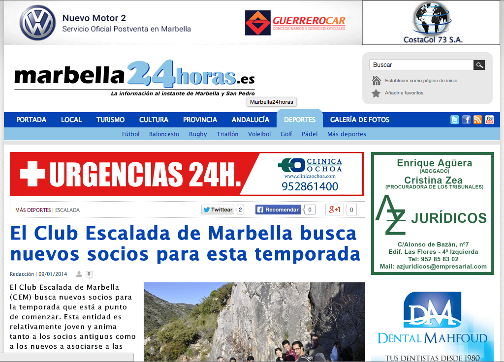 El Club Escalada de Marbella (CEM) busca nuevos socios para la temporada que está a punto de comenzar. Esta entidad es relativamente joven y anima tanto a los socios antiguos como a los nuevos a asociarse a las misma y federarse para esta campaña 2014. El club quiere seguir creciendo con numerosas actividades y salidas.