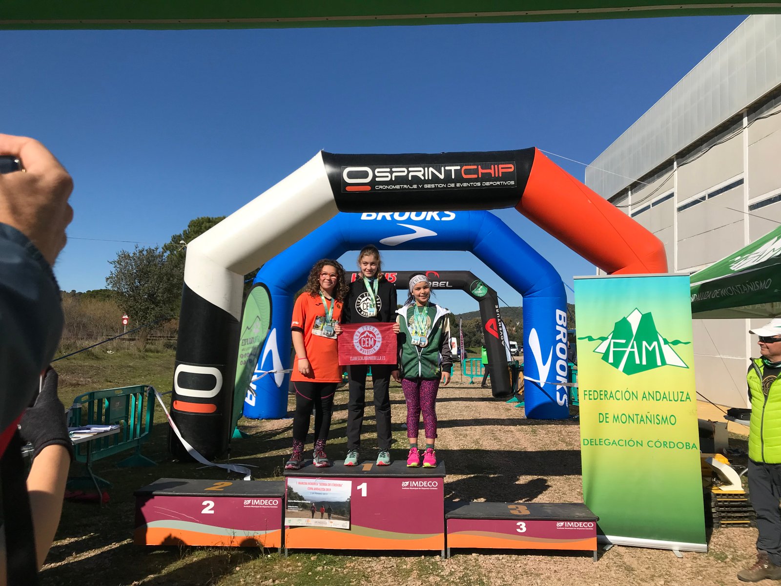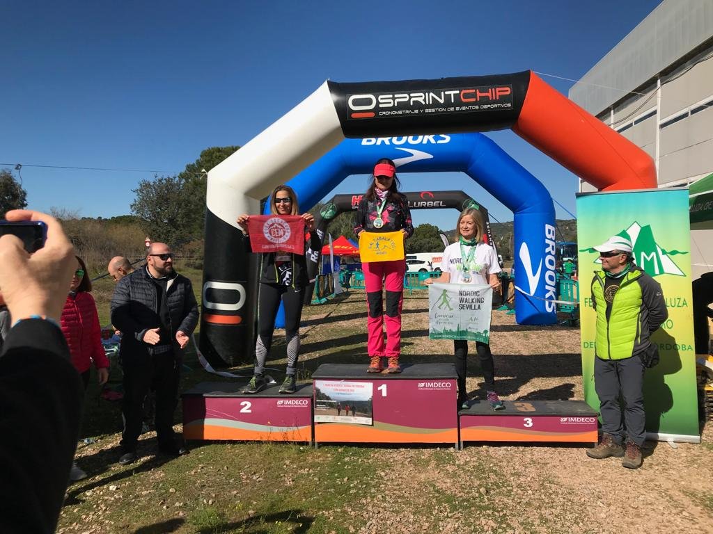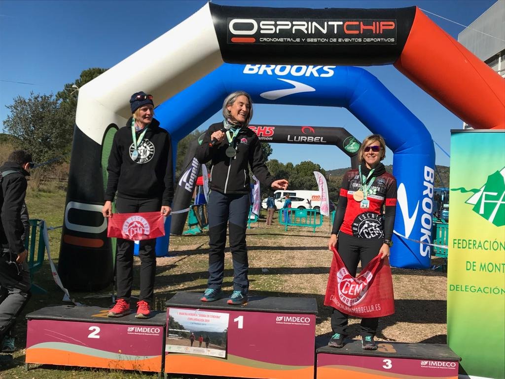 En categoría femenina cabe destacar los trofeos conseguidos por Anka Englisova y Sonia Téllez de nuestro Club quienes han conseguido las medallas de plata y de bronce en categoría absoluta, respectivamente, siendo la campeona Sonia Mirás del Club Ultra Trail Huelva con un tiempo en meta de 1h:18’:45”; así como el segundo y tercer puesto en categoría ‘master 40’ de Elisa Esteban y Susana Alba, respectivamente; y el segundo puesto en categoría ‘master 60’ de María Patricia Cabello. Chicas fuertes del CEM!