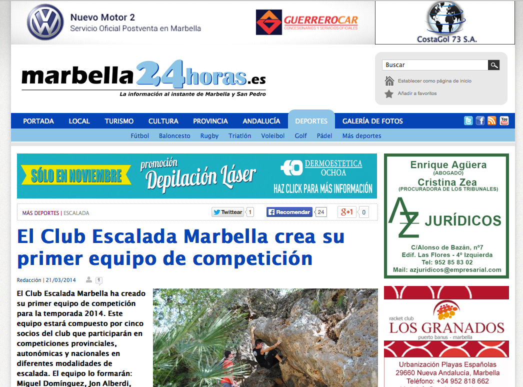El Club Escalada Marbella ha creado su primer equipo de competición para la temporada 2014. Este equipo estará compuesto por cinco socios del club que participarán en competiciones provinciales, autonómicas y nacionales en diferentes modalidades de escalada. El equipo lo formarán: Miguel Domínguez, Jon Alberdi, Emilio Narnajo, Pedro Soto y Carlos Hernández.