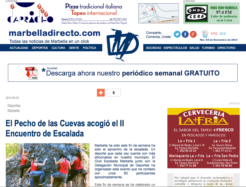 Marbella ha sido este fin de semana ha sido el epicentro de la escalada. Un deporte que cada vez cuenta con más aficionados en nuestro municipio. El Club Escalada Marbella junto con la Delegación Municipal de Deportes ha organizado este evento que ha contado con unos 80 participantes aproximadamente.