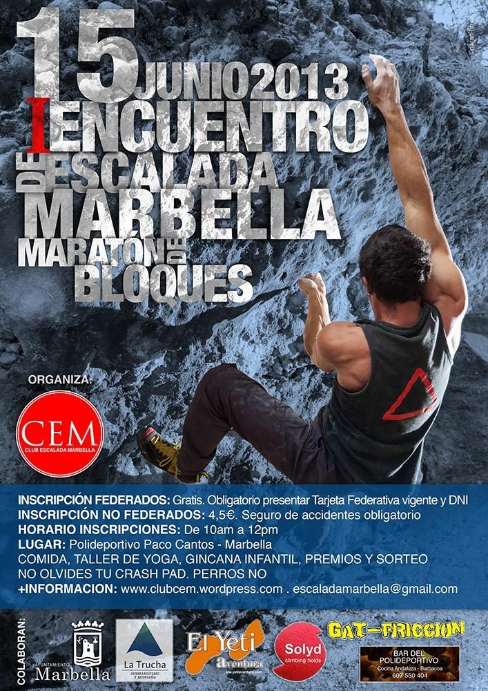 El Encuentro de Escalada Marbella 2013 fue gran éxito con más de 40 participantes y 50 bloques propuestos. Hubo diversión para todos, mucho nivel y buenos premios!