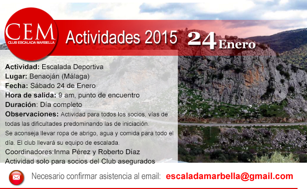 Se trata de un día de Escalada en la zona de escalada de las Banderas en el término municipal de Benaoján en la Serranía de Ronda (Málaga) donde los coordinadores ofrecerán a los participantes información de los sectores, vías existentes así como la dificultad de las mismas en función al nivel de los participantes.