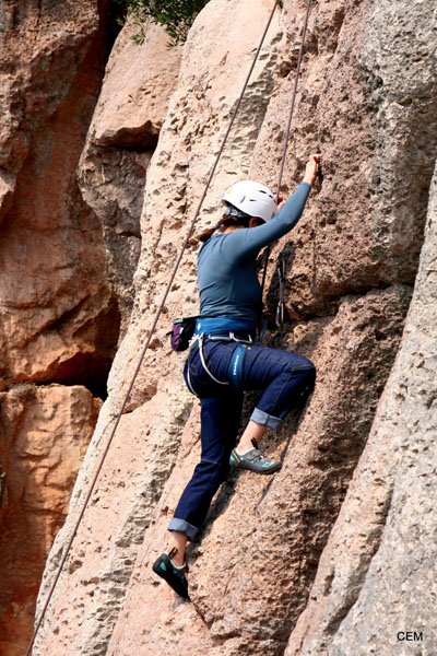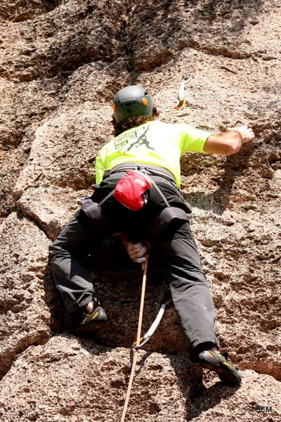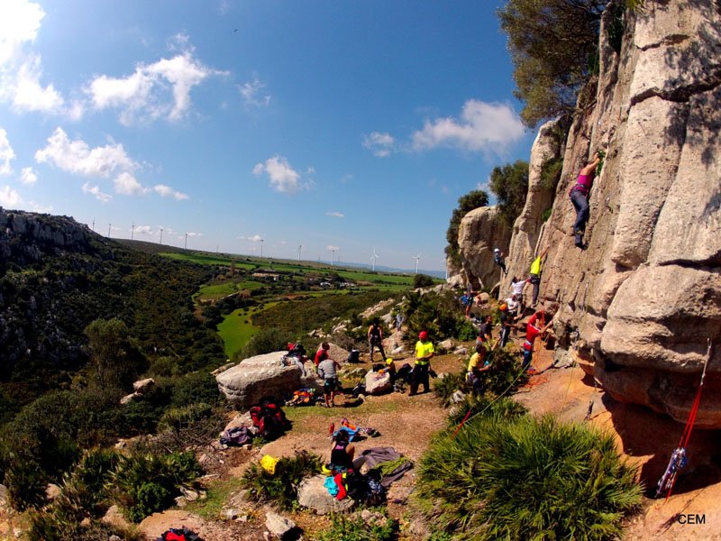 Muchos participantes con ganas de pasar un buen día de escalada en esta exigente escuela donde los IV,  V y 6b se dan la mano en dificultad.