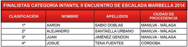 Finalistas Categoría Infantil II Encuentro de Escalada Marbella 2014