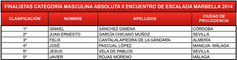 Finalistas Categoría Masculina Absoluta II Encuentro de Escalada Marbella 2014
