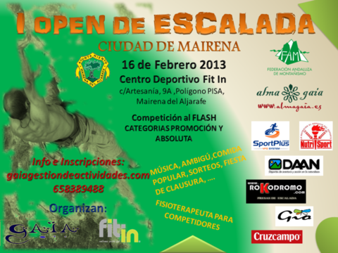 I OPEN DE ESCALADA CIUDAD DE MAIRENA, QUE SE CELEBRARA EL PRÓXIMO DÍA 16 DE FEBRERO EN LA LOCALIDAD SEVILLANA DE MAIRENA DEL ALJARAFE. – Mas Información – sitio Oficial