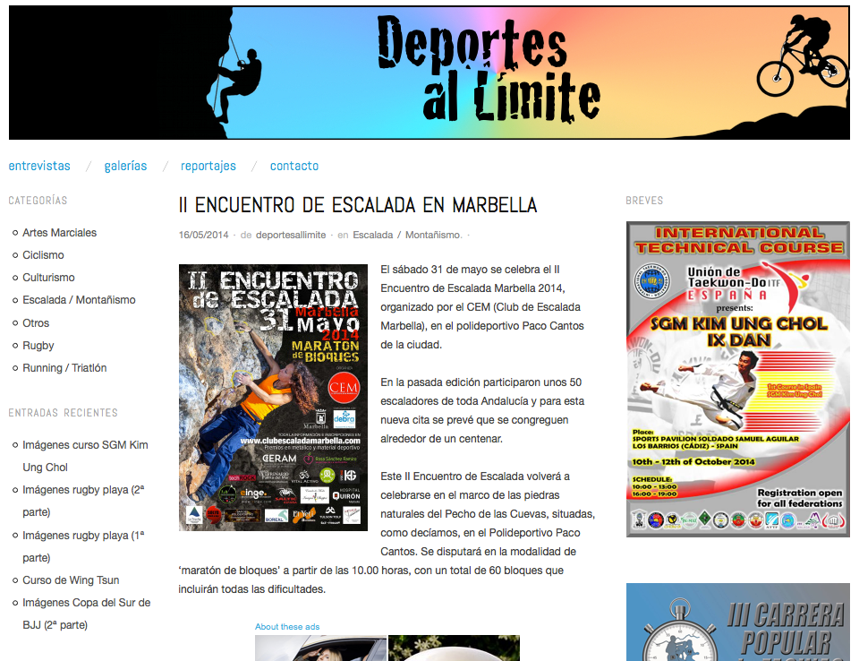 El sábado 31 de mayo se celebra el II Encuentro de Escalada Marbella 2014, organizado por el CEM (Club de Escalada Marbella), en el polideportivo Paco Cantos de la ciudad.