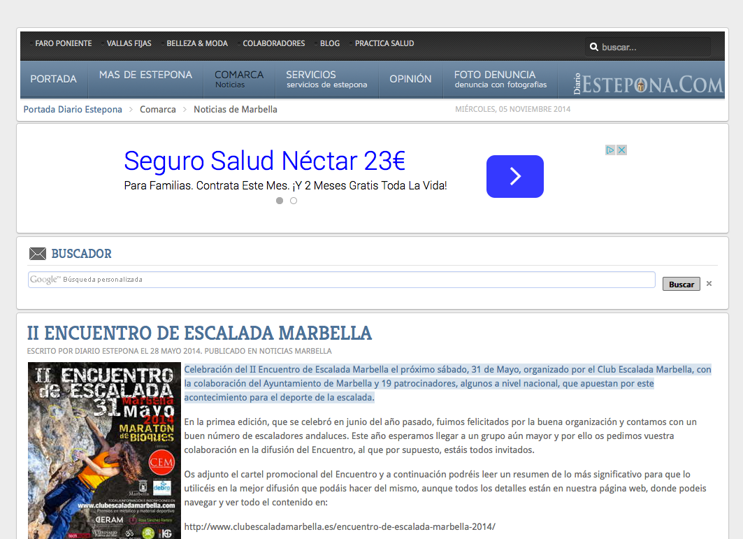Celebración del II Encuentro de Escalada Marbella el próximo sábado, 31 de Mayo, organizado por el Club Escalada Marbella, con la colaboración del Ayuntamiento de Marbella y 19 patrocinadores, algunos a nivel nacional, que apuestan por este acontecimiento para el deporte de la escalada.