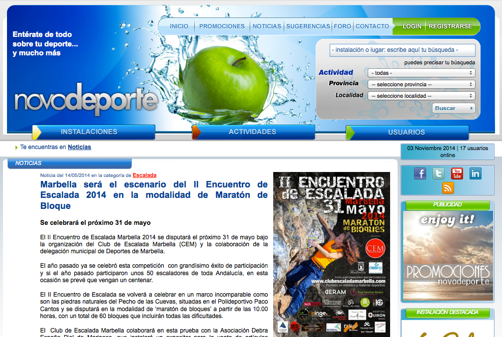 El II Encuentro de Escalada Marbella 2014 se disputará el próximo 31 de mayo bajo la organización del Club de Escalada Marbella (CEM) y la colaboración de la delegación municipal de Deportes de Marbella.