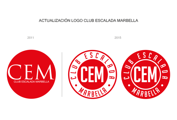 Vicente Romero nos explica el proceso creativo en esta actualización del logo: «Lo primero fue solventar las carencias presentes en el diseño anterior en cuanto a legibilidad, apostando por una tipografía de trazos rectos y con cuerpo suficiente para hacer destacar las siglas CEM dentro del punto rojo. El nombre completo pasa ahora a rodear circularmente el punto rojo ganando mucho en cuerpo de texto y visibilidad. El nuevo diseño recuerda a la estampación de un sello, que remite al concepto de territorialidad propio de aquellas zonas escarpadas de montaña únicamente accesibles por los afortunados miembros de este club ;-)».
