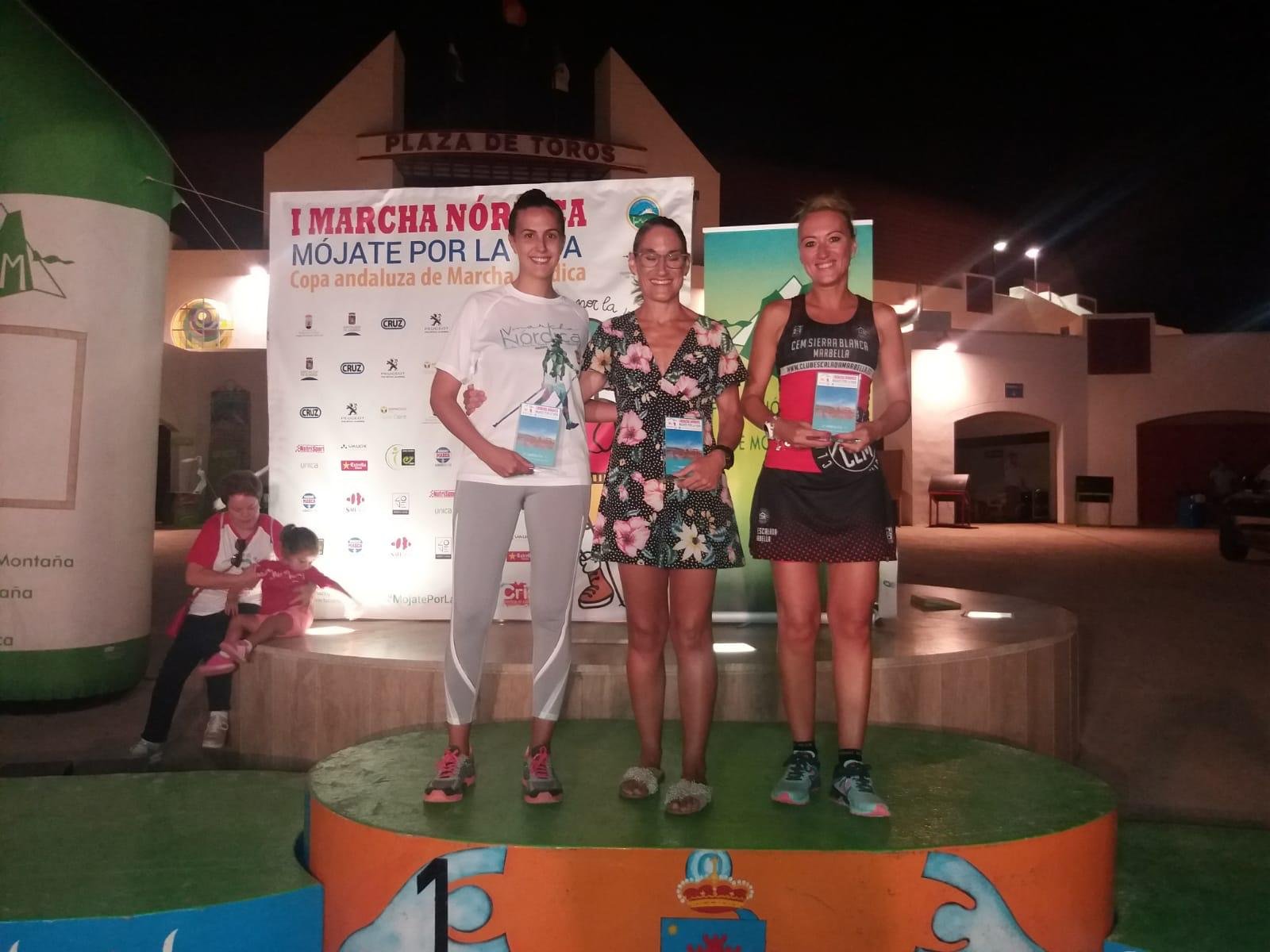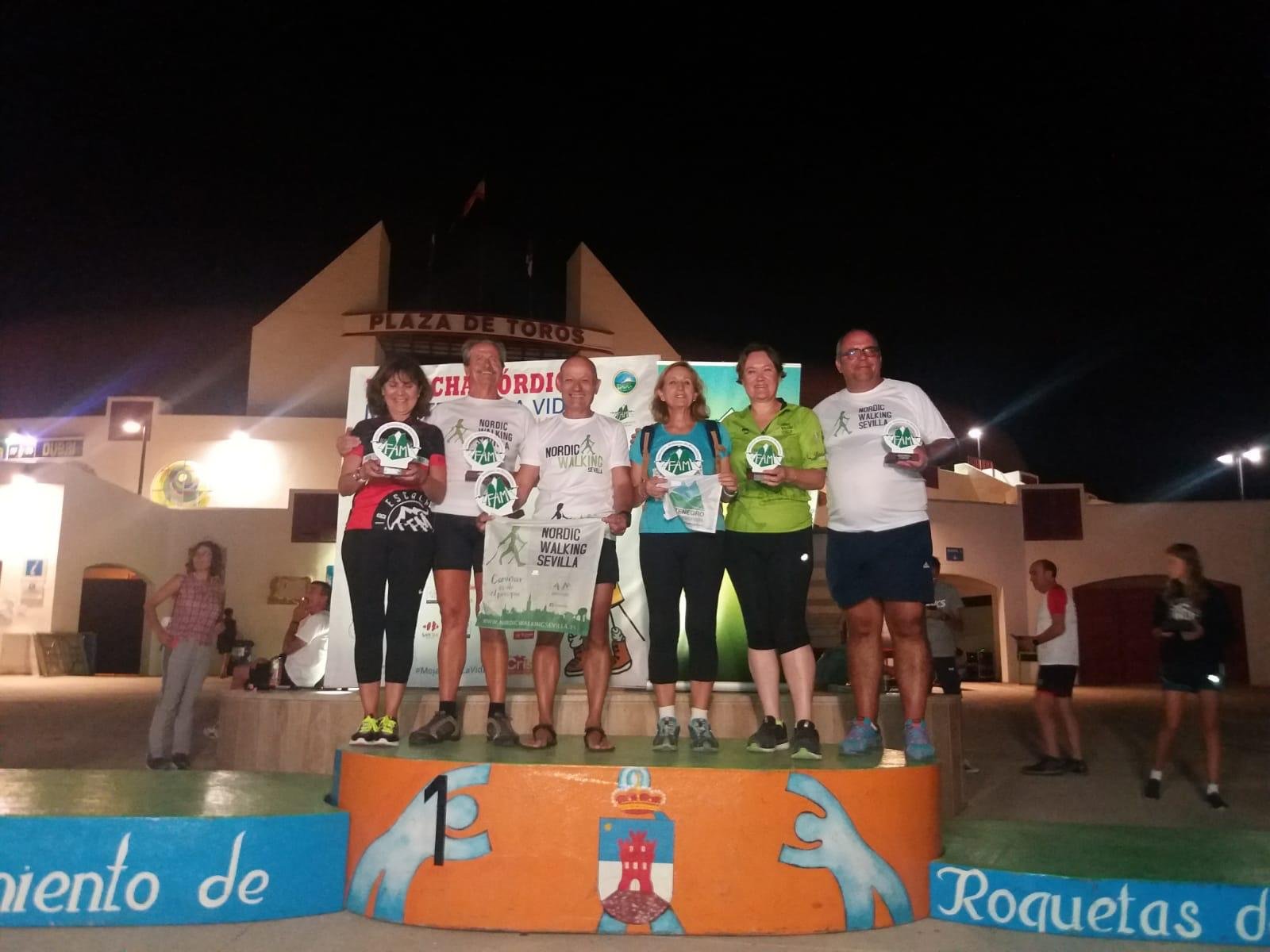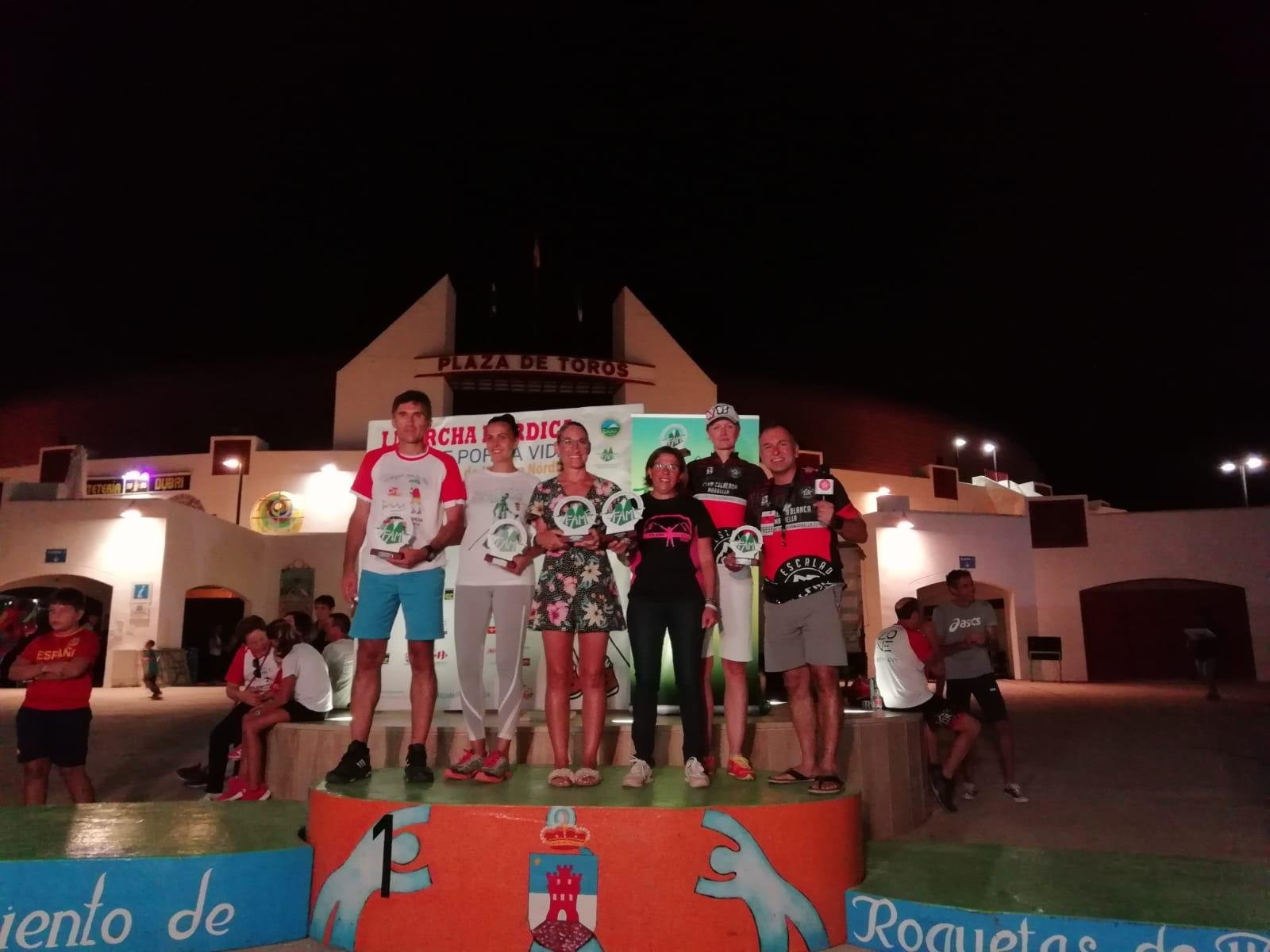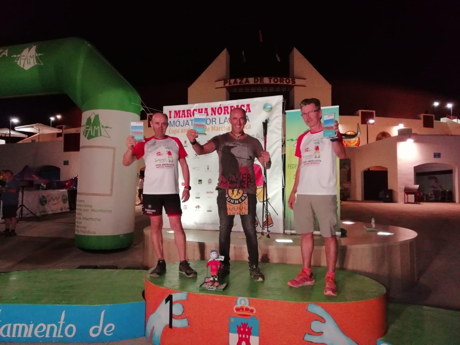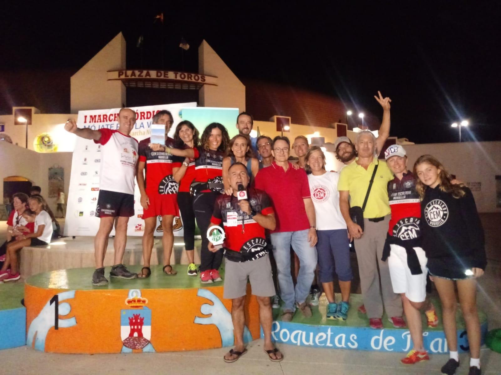 El Club Escalada Marbella (CEM) informa de que la última prueba puntuable de la Copa Andaluza de Marcha Nórdica se ha celebrado en la ciudad almeriense de Roquetas de Mar, en un recorrido que transcurrió por un circuito por La Ribera de La Algaida, con un total de 11 kilómetros de distancia, y en la que ocho miembros del club han conseguido podio.