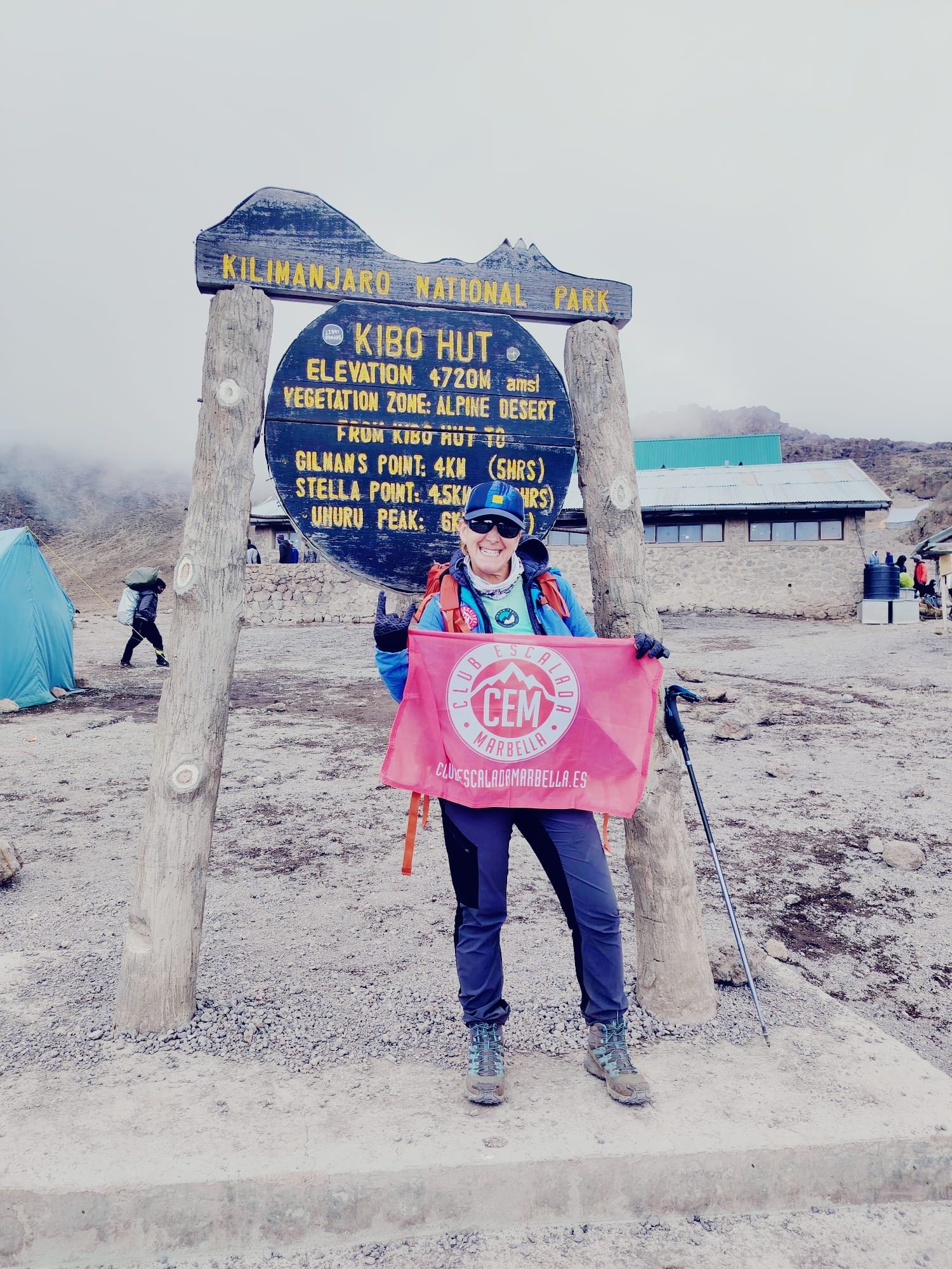 Y tras cuatro dias cruzando ríos africanos, en condiciones climatológicas adversas, llegaron al campo base de Kibo Hut a 4720 metros de altura (para estar colocado todo el dia).