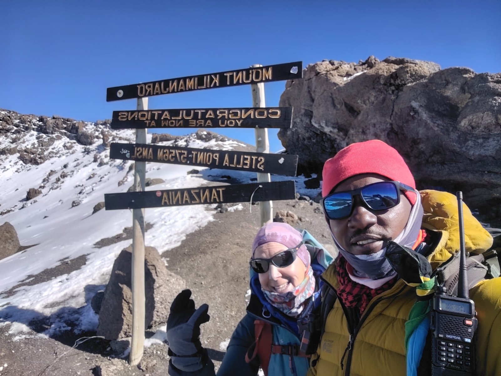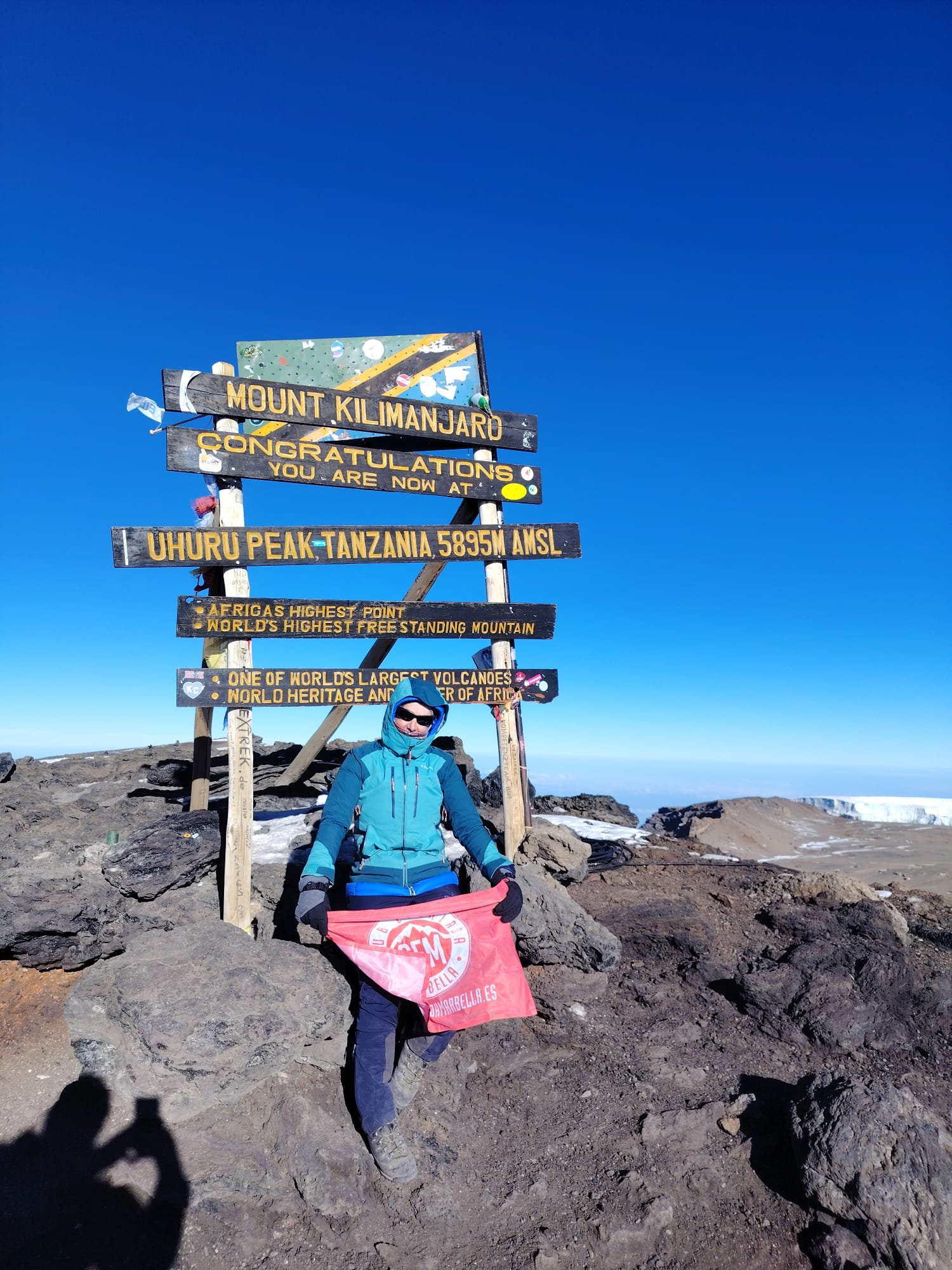 Atacaron cima a la cumbre del emblematico Kilimanjaro de 5895 metros de altituda las 23 horas y en unas condiciones durísimas entre ascenso y descenso emplearon unas 10 horas y media, aunque sus dos compañeros necesitaron oxigeno para ascender, por supuesto nuestra bixarraka iba como ella dice «a pelo» ni oxigeno, ni pastillitas, «ni de ná«, dejando la impronta de su coraje y valentía.