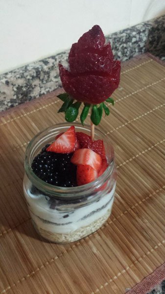 - Trocitos de frutos rojos: fresas, moras y grosellas (como es el caso de la foto)