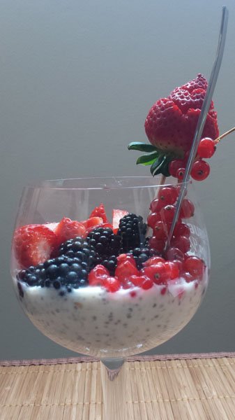 He de resaltar de esta receta las valiosas propiedades de las semillas de chía que son una excelente fuente de fibra y antioxidantes, calcio, proteínas y ácidos grasos omega 3.