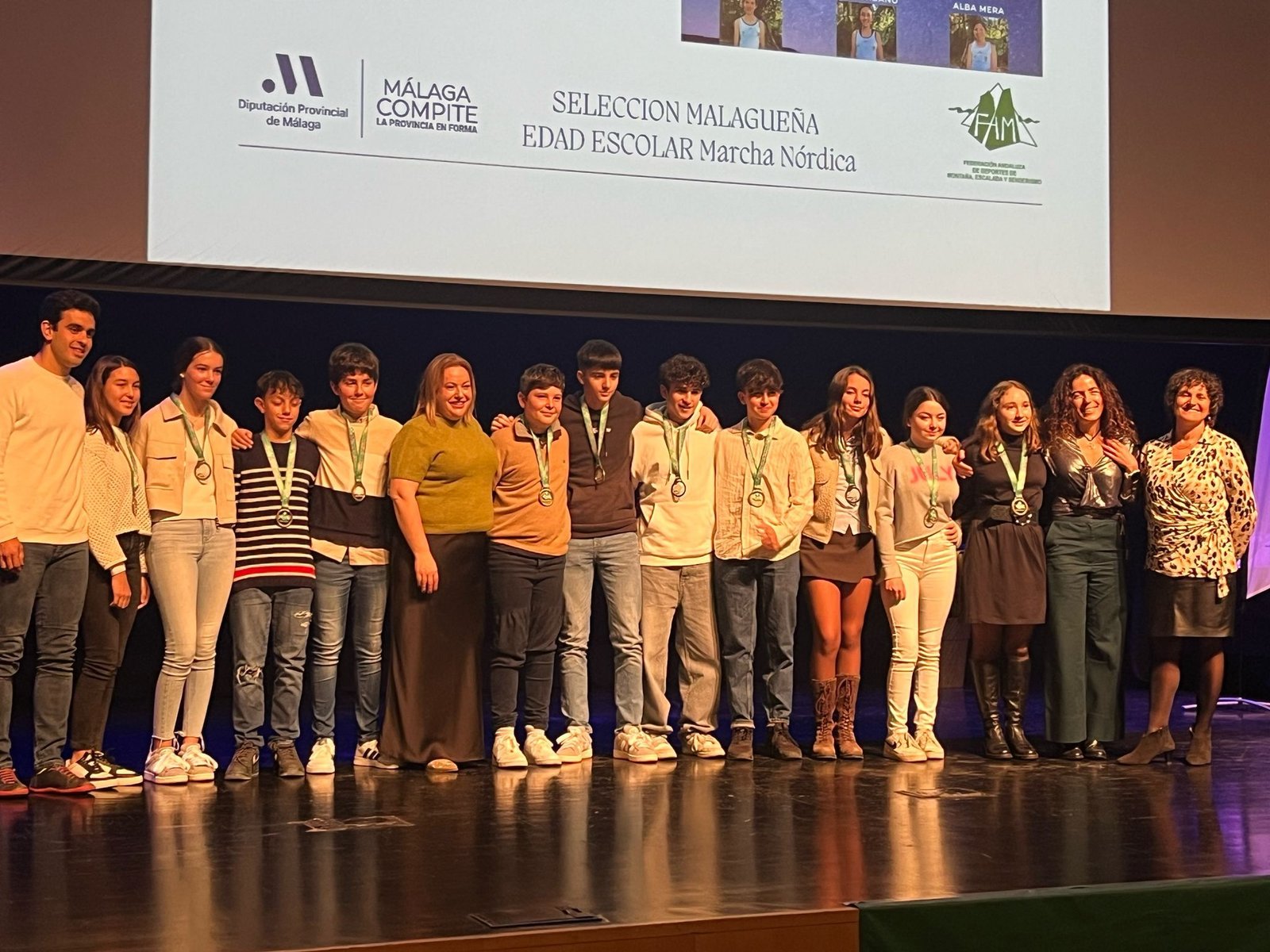 Gran reconocimiento de la Federación Andaluza de Deportes de Montaña y Escalada (FADMES) a lo/as marchadore/as y al Club Escalada Marbella, por sus éxitos deportivos en la modalidad de Marcha Nórdica durante el año 2024, en la Gala de Montañismo Malagueño.